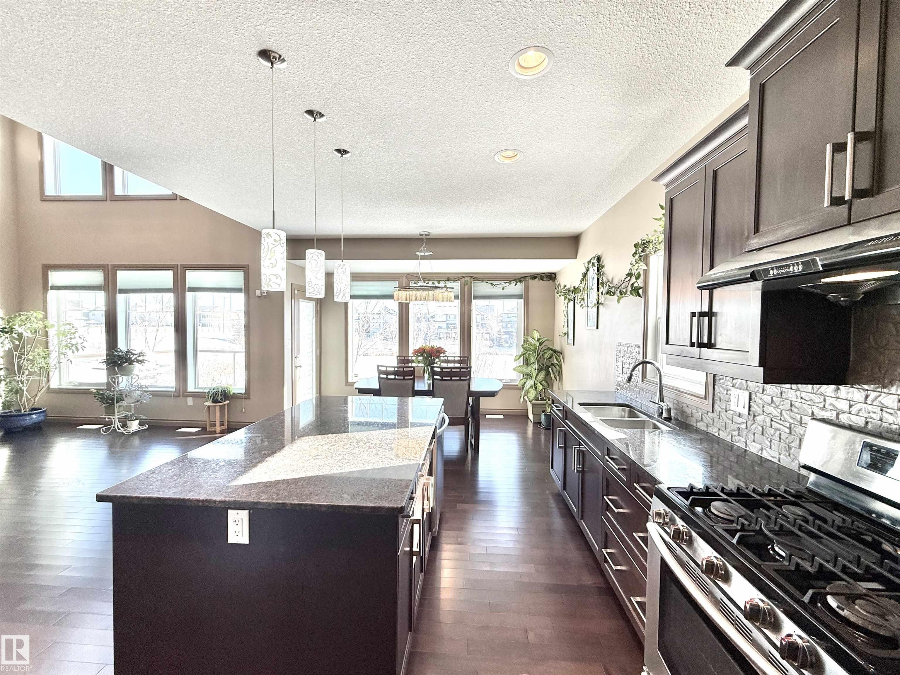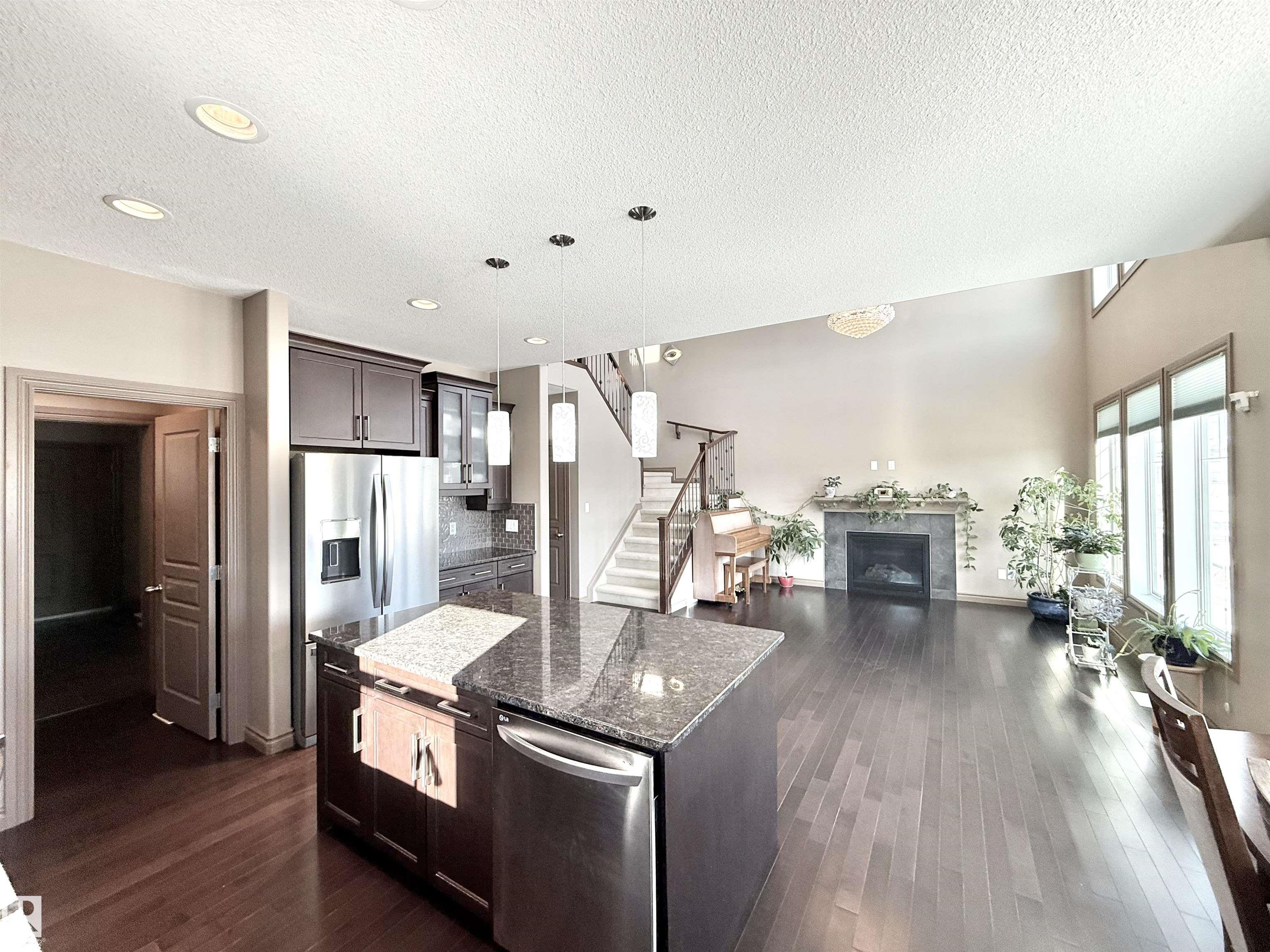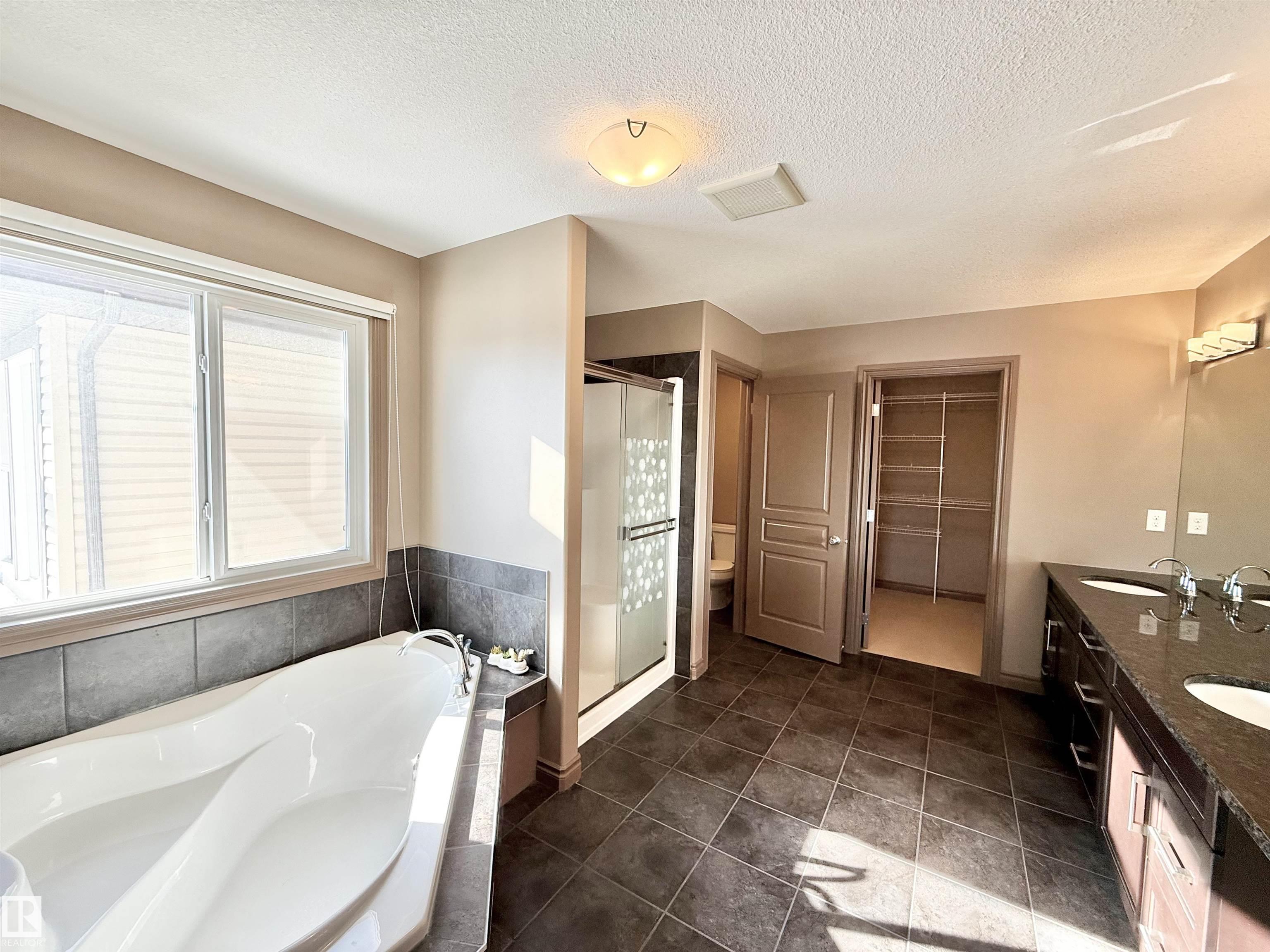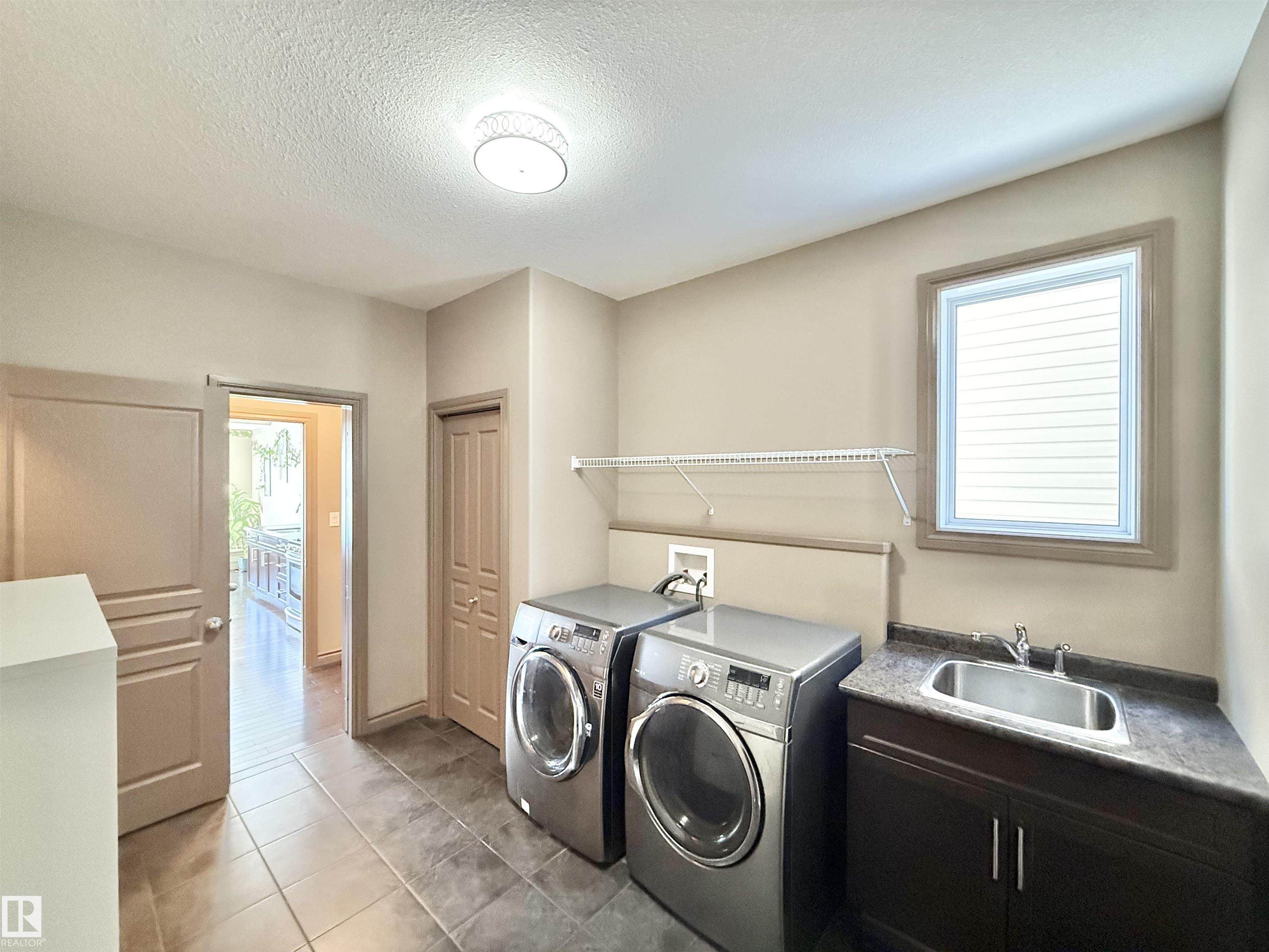 Welcome to this stunning lake-view, walkout basement two-storey home in prestigious Windermere. Built in 2013, this home offers over 3,300 sq.ft. of total living space, including 2,330 sq.ft. above grade plus a fully finished basement. The main floor features 9-ft ceilings and a dramatic 19-ft open-to-above living room with a full wall of windows, filling the space with natural light. Hardwood flooring complements the open-concept kitchen with stainless steel appliances, granite countertops, ample cabinetry, and a walkthrough pantry. A functional mudroom with laundry and sink connects to an oversized attached double garage. This level also includes a bedroom/office and a 2-piece bath. Upstairs offers a bonus room, a spacious primary suite with lake views, a 5-piece ensuite and walk-in closet, plus two additional bedrooms and a full bath. The bright walkout basement features a large family room, two bedrooms, and a full bath. Close to schools, shopping, and Henday. Rare opportunity!