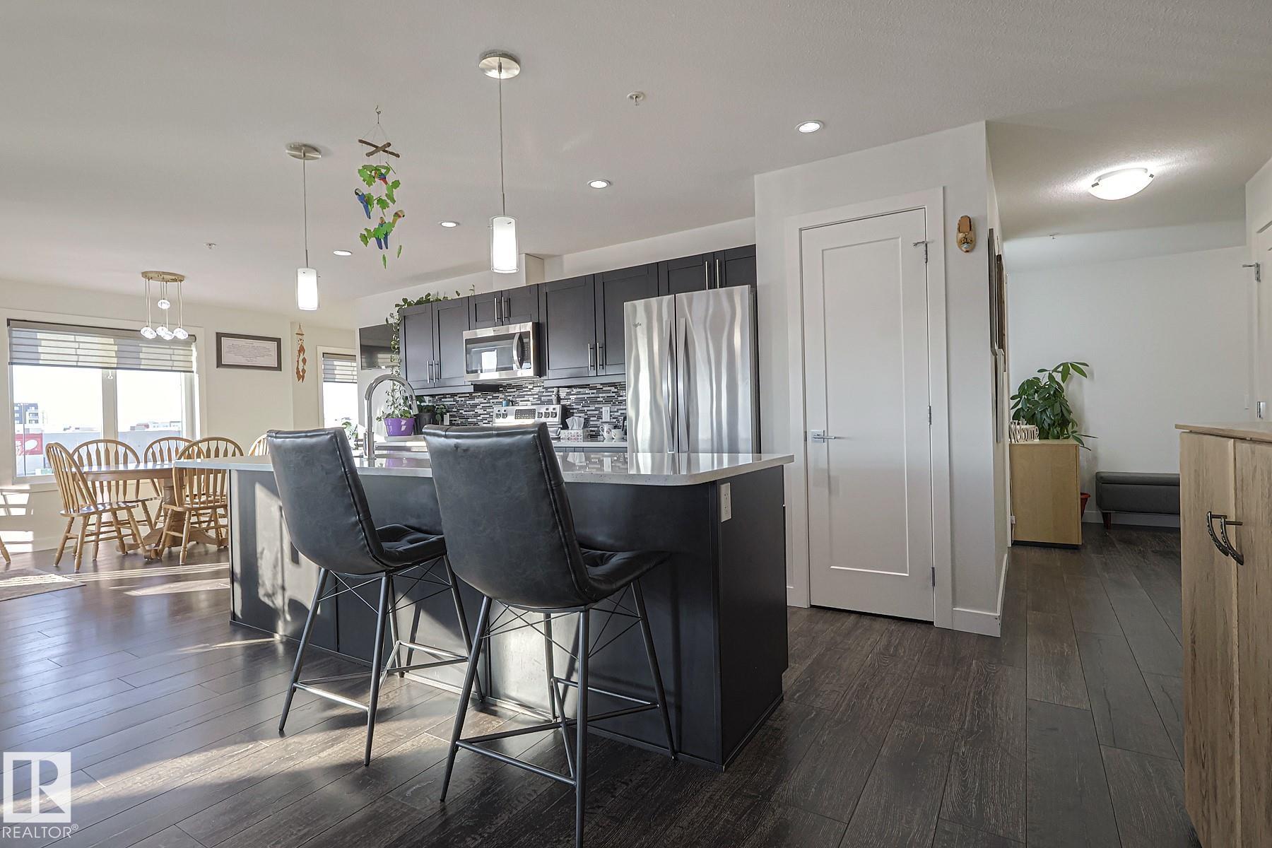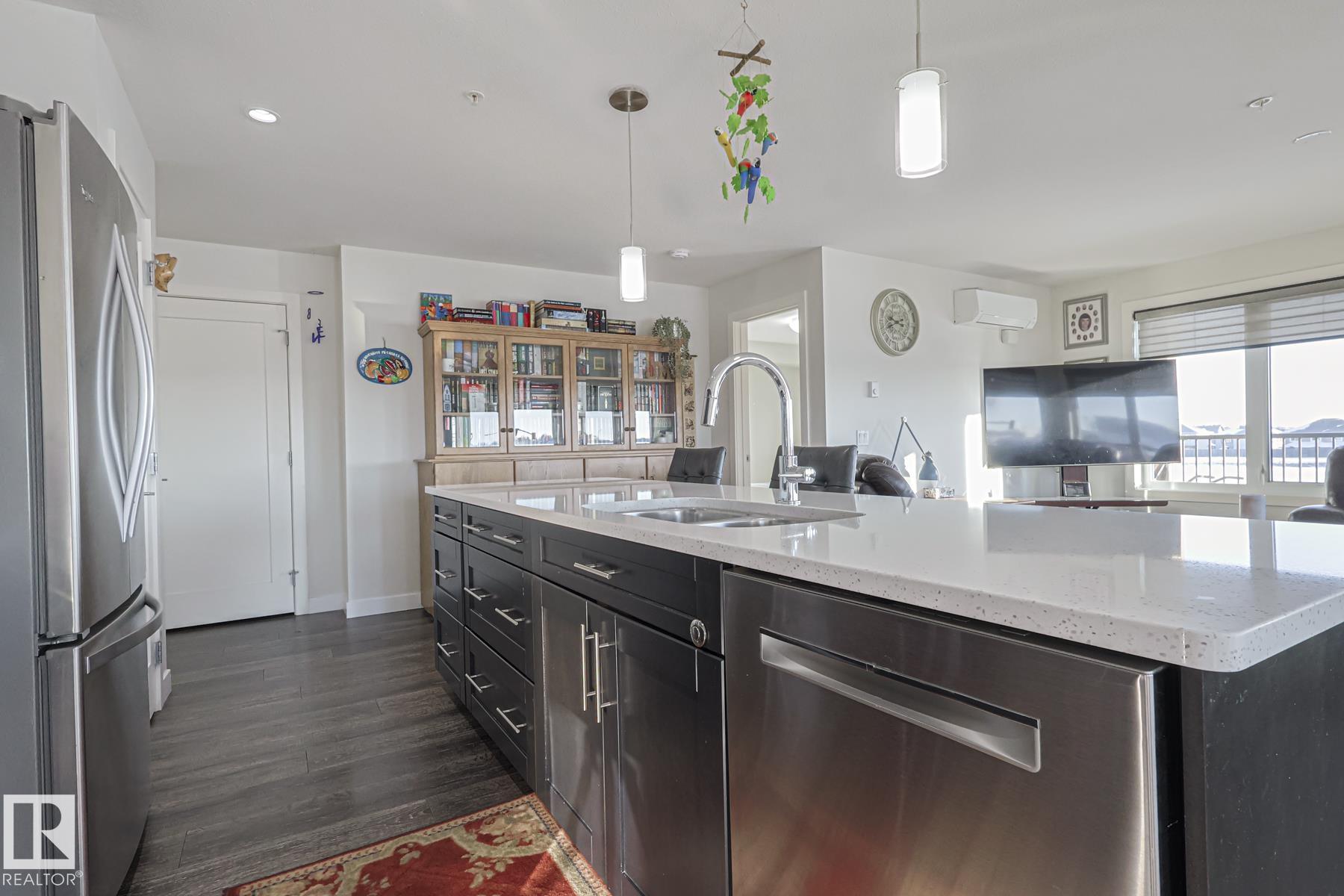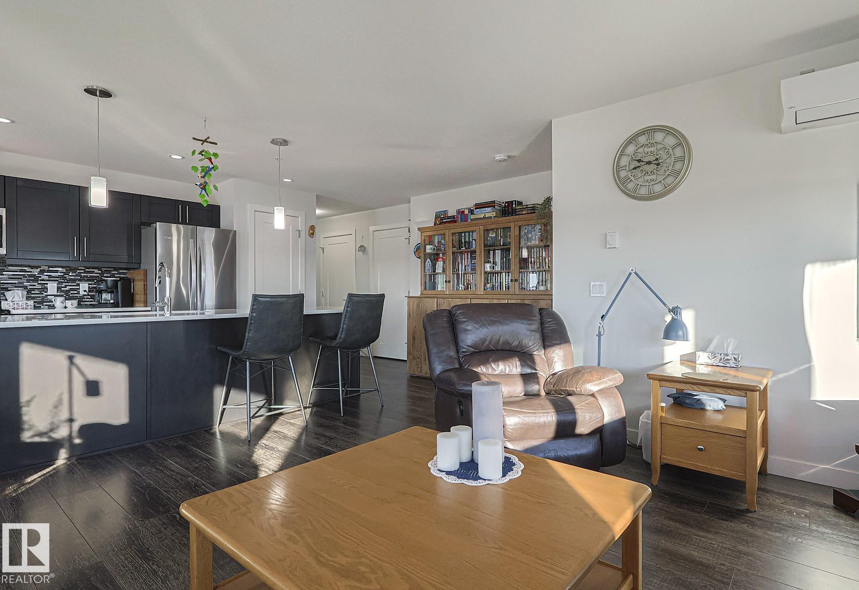 Welcome to LUXURIOUS living offered in the Essence at Windermere South (18+) complex! This IMMACULATE 3rd floor CORNER UNIT is sure to please even the most discerning buyer! Entering the unit you have a true foyer with ample storage space and room for bench seating. Rounding the corner you are immediately greeted by the vast number of windows, the stunning natural light shining through and the large OPEN CONCEPT kitchen and living room. IN-FLOOR HEAT, AC, QUARTZ COUNTERTOPS, CUSTOM WINDOW COVERINGS, stainless steel appliances, closet organizers...the "wish list" of items are all here for you to enjoy! Warm weather will soon be here for you to extend your already large living space out to the wrap around, unobstructed deck. Completing this 1173 sq ft STUNNING 2 bedroom (with flex space), 2 bathroom unit are 2 TITLED PARKING STALLS w/storage cages - located close to the elevator in the heated parkade...and a TITLED STORAGE LOCKER on the 3rd floor. Time to LIVE THE LIFE!