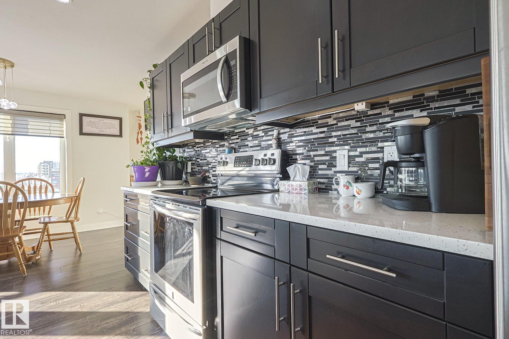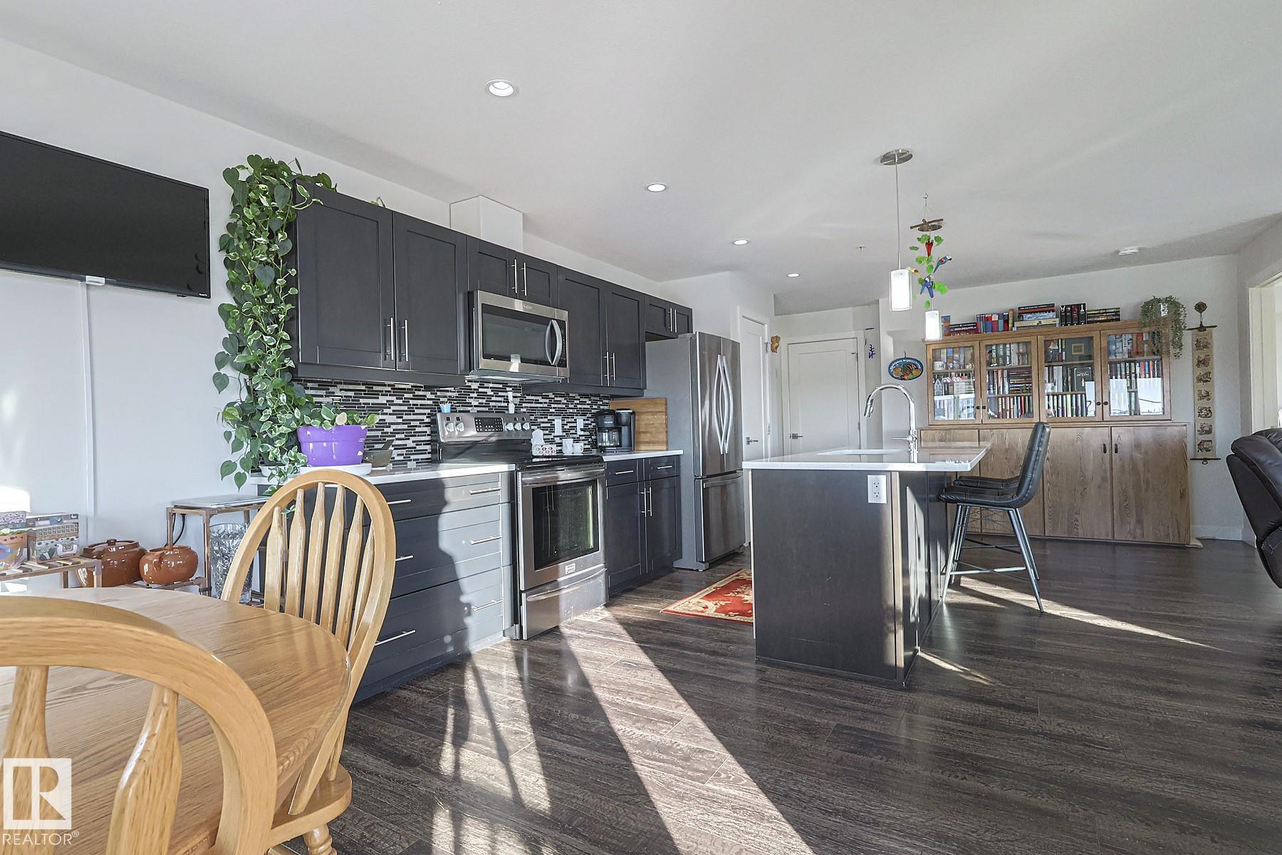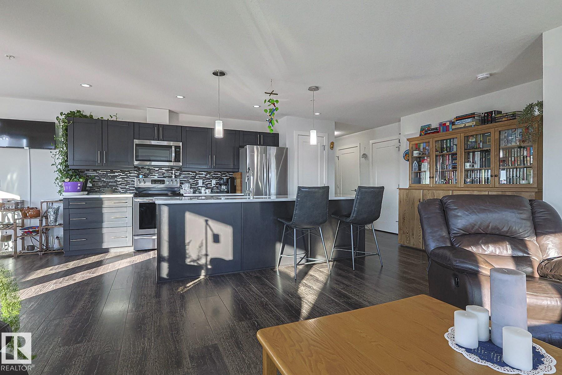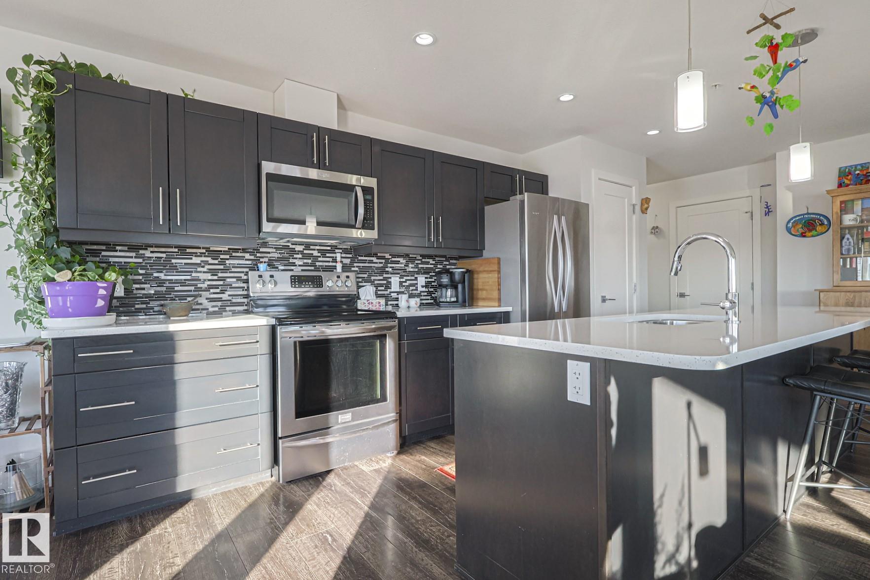 Welcome to LUXURIOUS living offered in the Essence at Windermere South (18+) complex! This IMMACULATE 3rd floor CORNER UNIT is sure to please even the most discerning buyer! Entering the unit you have a true foyer with ample storage space and room for bench seating. Rounding the corner you are immediately greeted by the vast number of windows, the stunning natural light shining through and the large OPEN CONCEPT kitchen and living room. IN-FLOOR HEAT, AC, QUARTZ COUNTERTOPS, CUSTOM WINDOW COVERINGS, stainless steel appliances, closet organizers...the "wish list" of items are all here for you to enjoy! Warm weather will soon be here for you to extend your already large living space out to the wrap around, unobstructed deck. Completing this 1173 sq ft STUNNING 2 bedroom (with flex space), 2 bathroom unit are 2 TITLED PARKING STALLS w/storage cages - located close to the elevator in the heated parkade...and a TITLED STORAGE LOCKER on the 3rd floor. Time to LIVE THE LIFE!