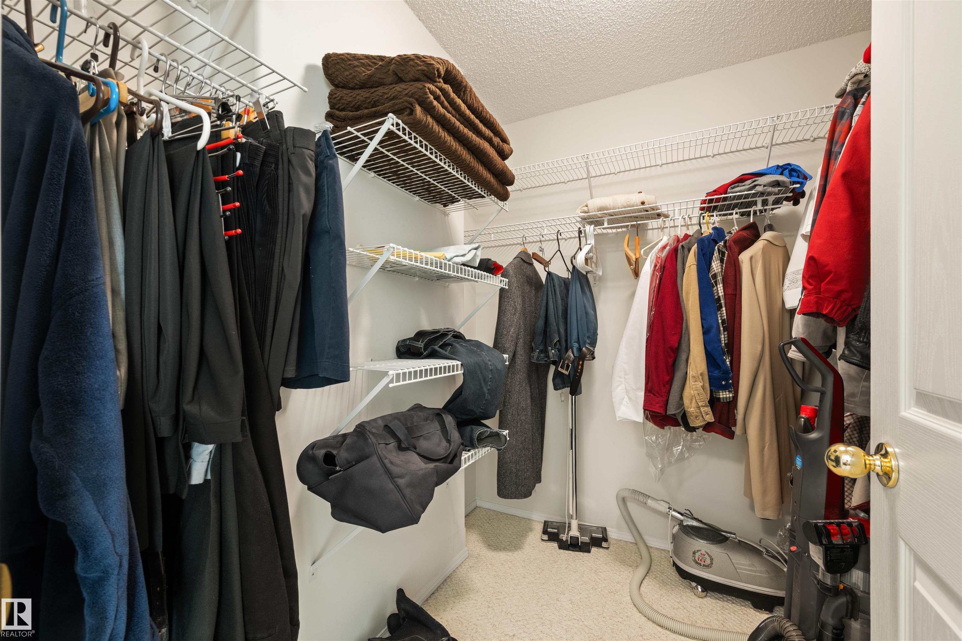 Experience elevated condo living in this beautifully appointed 1,288 sq.ft. adult only(18+) residence featuring 2 spacious bedrooms, 2 bathrooms, and a refined den, ideal for a private office or reading retreat. This elegant suite offers large, light-filled living spaces, a generous dining area perfect for hosting, and A/C for year-round comfort. Soak in stunning balcony views while enjoying abundant natural light that pours through oversized windows. The thoughtfully designed layout provides both privacy and flow, creating a truly sophisticated living environment. The expansive primary suite is a true sanctuary, featuring a walk-in closet and ensuite to create a completely self-contained retreat. Residents enjoy access to premium building amenities, including a guest suite, fitness room, and party room. Completing the package is a rare TANDEM DOUBLE heated garage, offering secure, convenient parking in every season. Walking distance to Terwillegar rec-center, public transit and so many amenities!