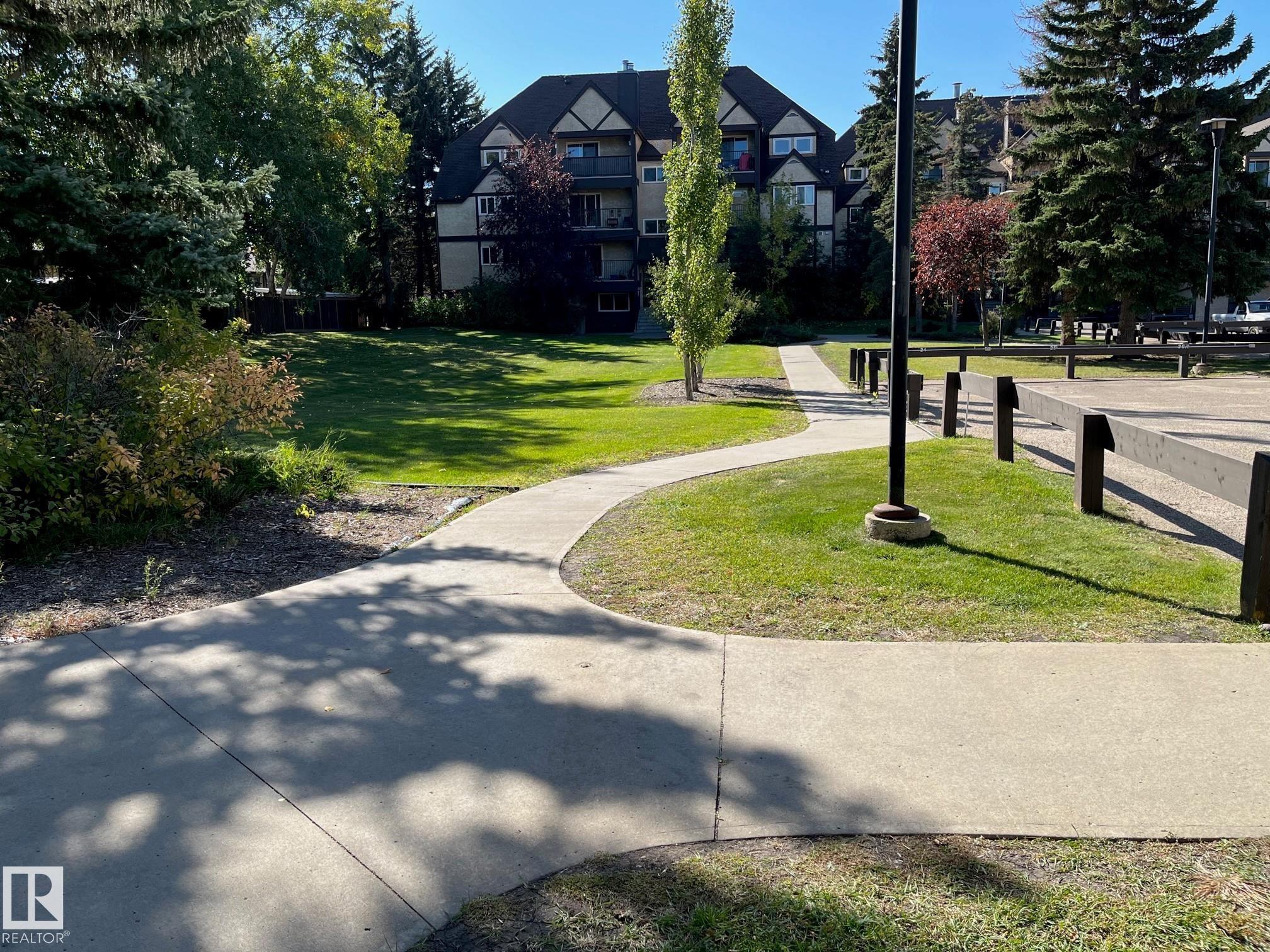 Great private location on the top floor facing into the courtyard. Desirable floor plan for its size with open Kitchen to the living area. You will appreciate the separate laundry room with nice storage. The bedroom is amazingly spacious with tons of light. Cozy corner fireplace. One of the best locations with walking distance to tons of amenities, shopping restaurants, groceries. Easy access to the Henday. One parking stall is included close to the door and under ground parking when available for 75.00 a month. Entrance to underground parking is just steps to the door as well.