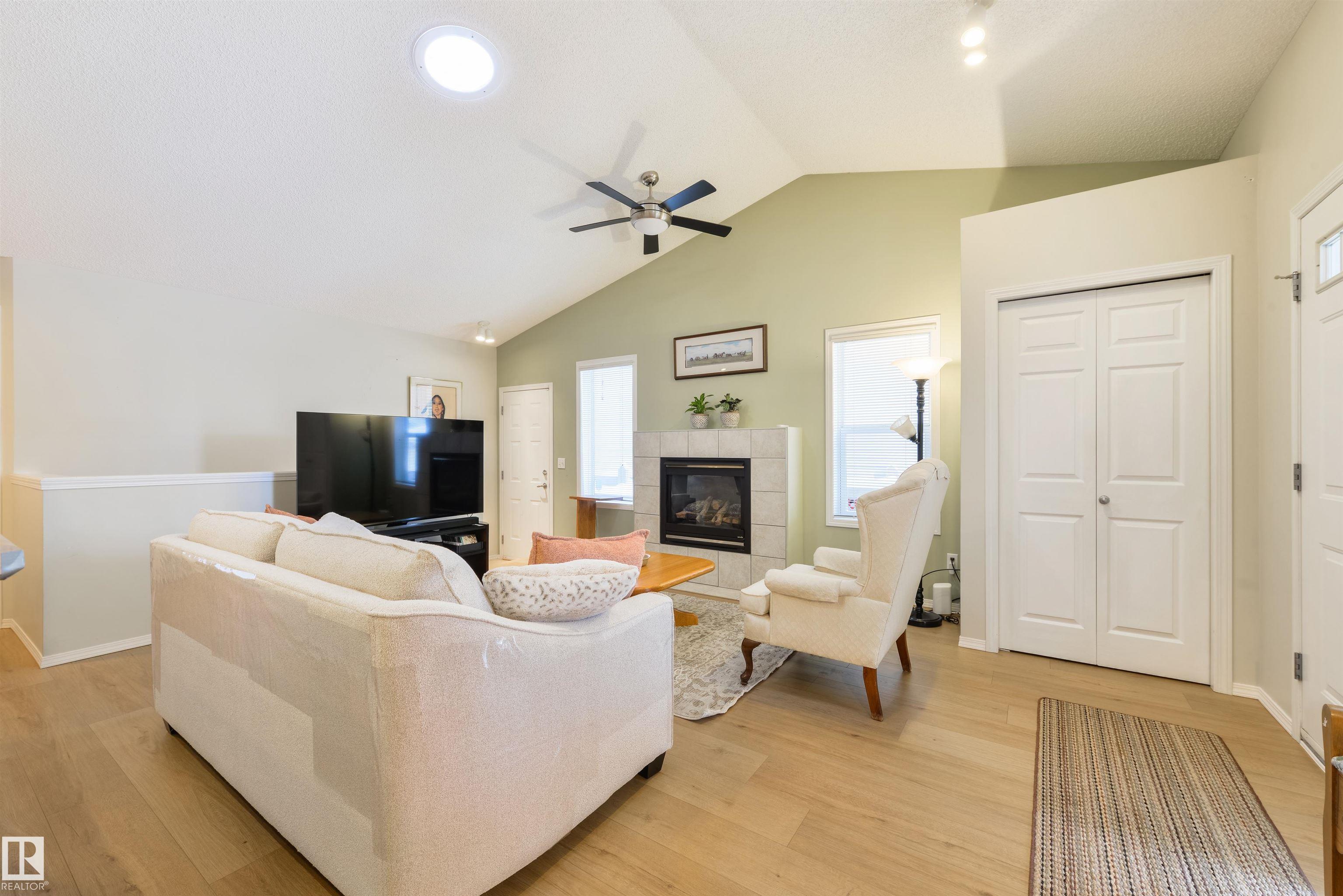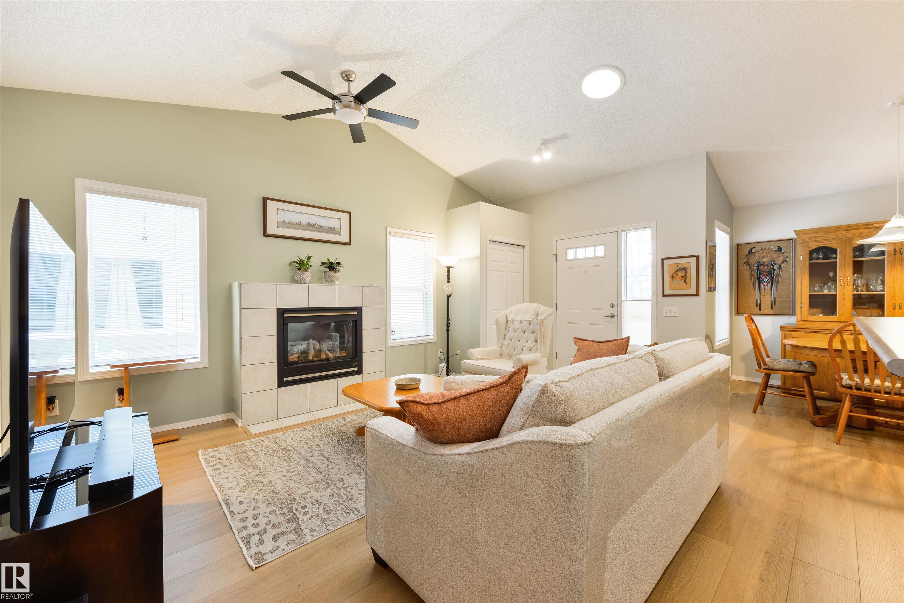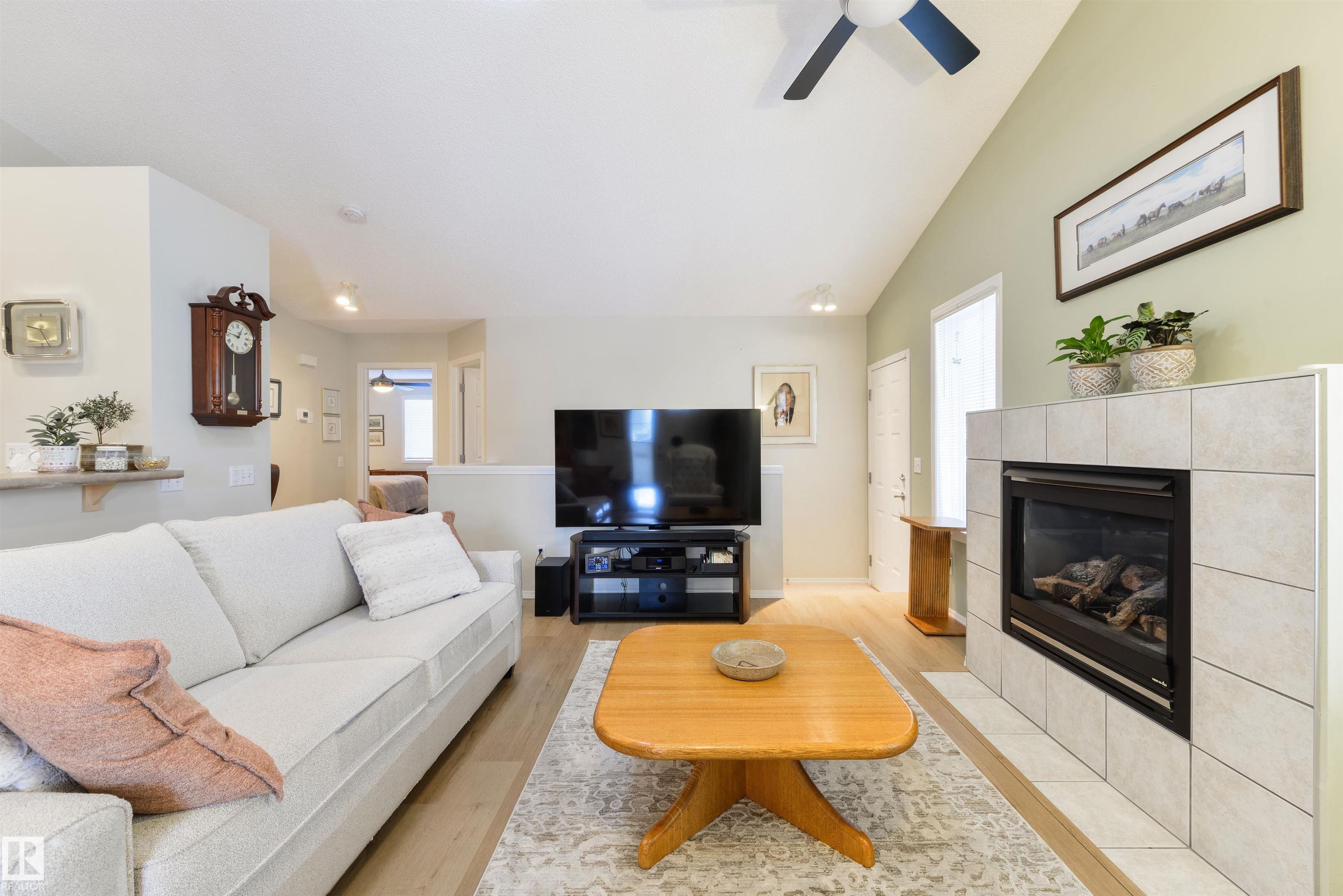 Enjoy low-maintenance living with a $125/month HOA covering lawn care and snow removal. The landscaped yard features perennials, raspberries, and rhubarb. This 1,100 sq ft half-duplex bungalow in quiet Christina Court offers vaulted ceilings and two solar tubes that fill the open living, dining, and kitchen area with natural light. A gas fireplace adds warmth, and abundant cabinetry makes entertaining easy. Main-floor laundry adds convenience. New lamintae flooring. Two bedrooms include a king-sized primary with walk-in closet and 4-pc ensuite. Central A/C keeps you cool. The basement is 75% finished?framed and drywalled for a family room, bedroom, den, and 2-pc bath (vanity ready). With a side entrance and plumbing for a second washer/dryer, it?s ideal for a nanny or in-law suite. Insulated double garage, NEW Kitchen appliances included, no age restrictions.