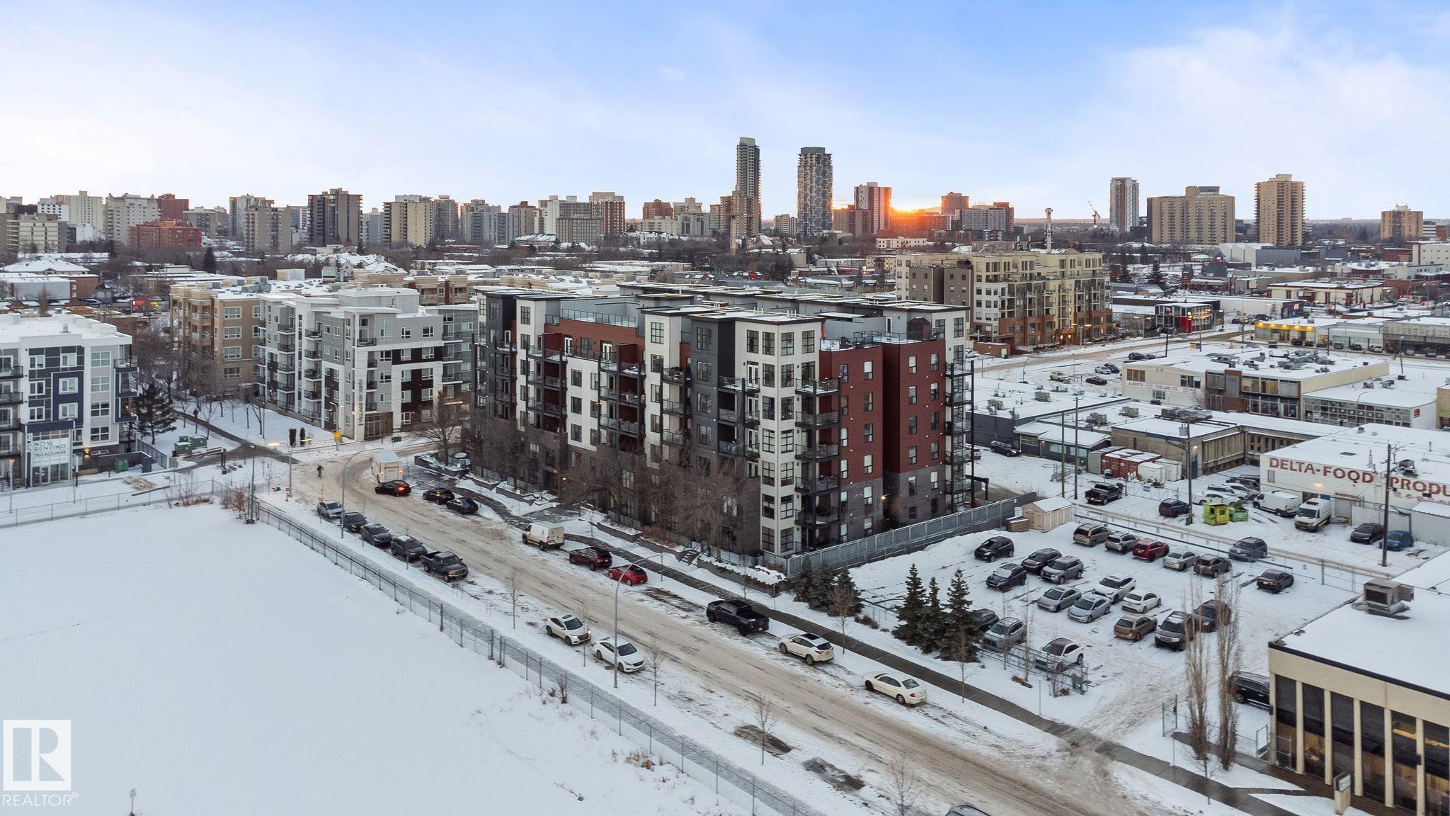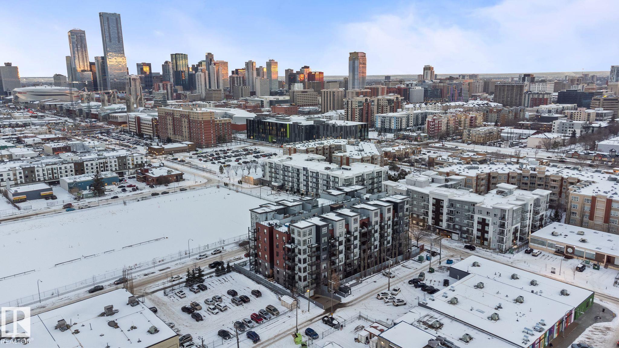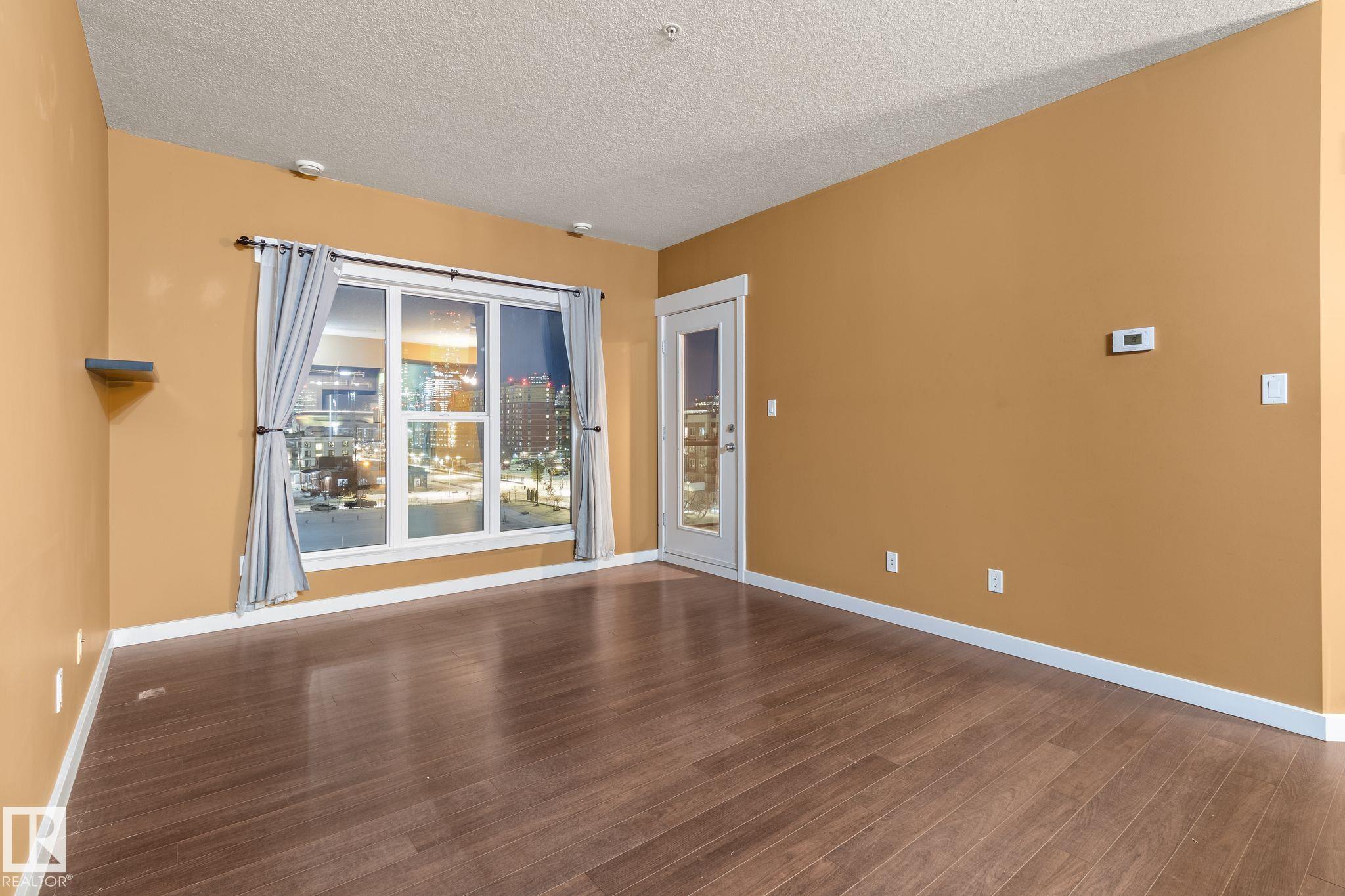 Minutes to downtown and close to Edmonton?s best restaurants, shopping, and nightlife, this 790 sq ft condo nails the ?easy city living? vibe. Tall ceilings and an open layout make the space feel bright and airy, while large windows bring in tons of natural light. The kitchen is the centerpiece with granite counters, a big island for prep and hosting, and stainless steel appliances. Wood style flooring keeps it clean and durable. The primary bedroom easily fits a king bed and includes a private dressing area that leads into a modern ensuite with a glass shower. A second room gives you options as a home office, guest space, or flex room. You also get a second full bathroom, in suite laundry, and air conditioning for summer comfort. Step outside to an oversized balcony with a gas line for your BBQ and plenty of room for patio furniture, perfect for summer evenings. Complete the package with underground parking for secure, year round convenience.