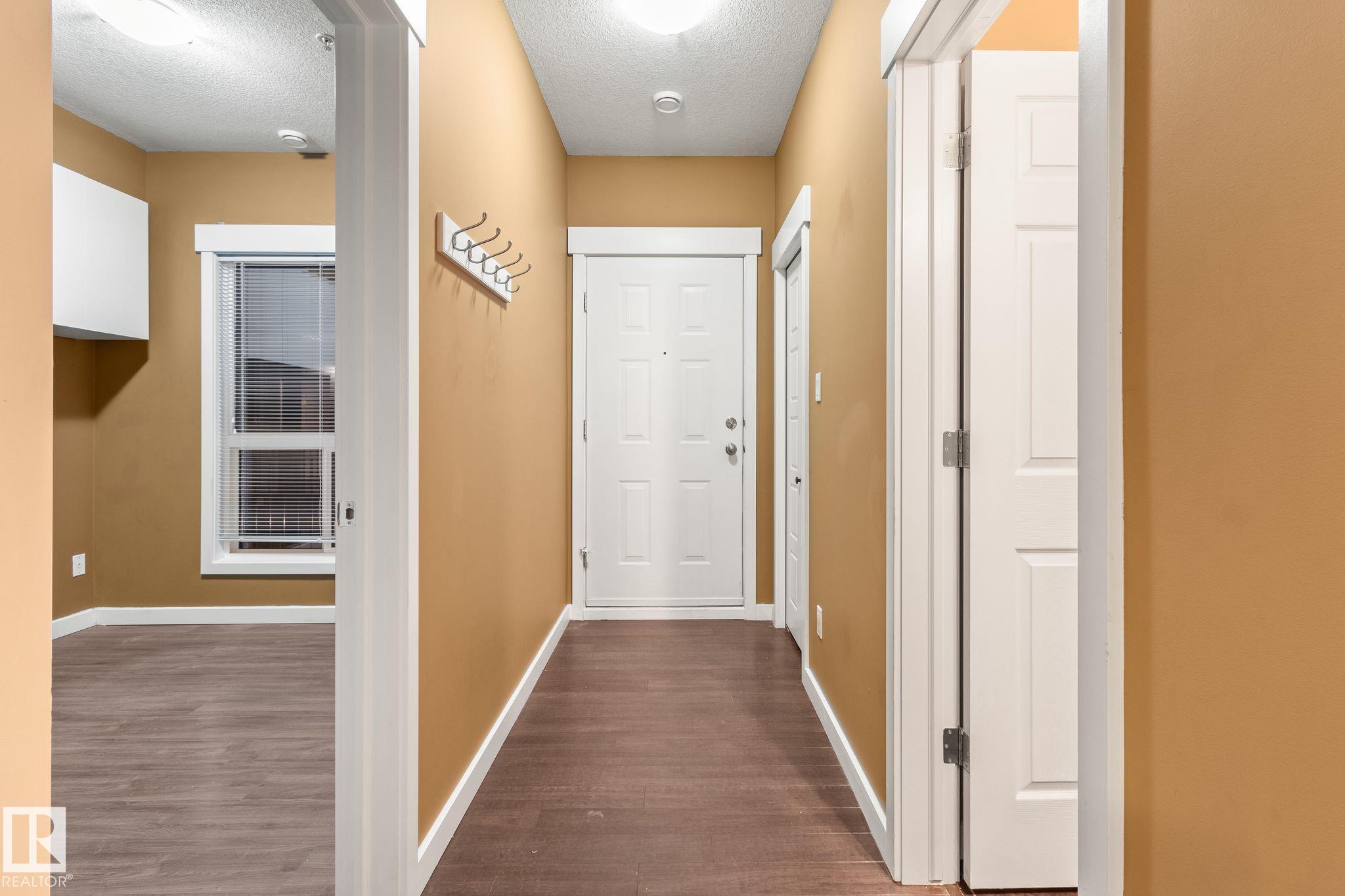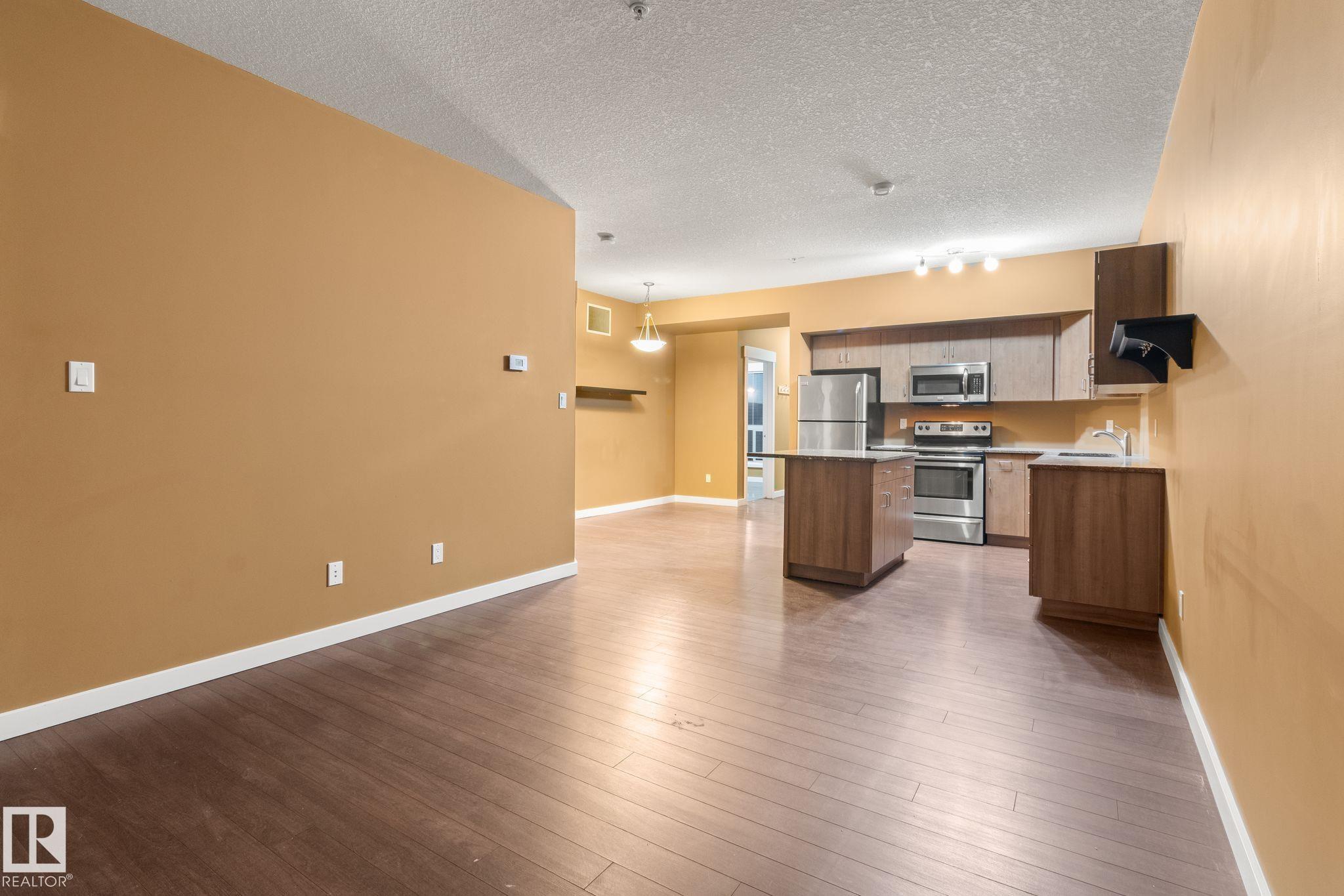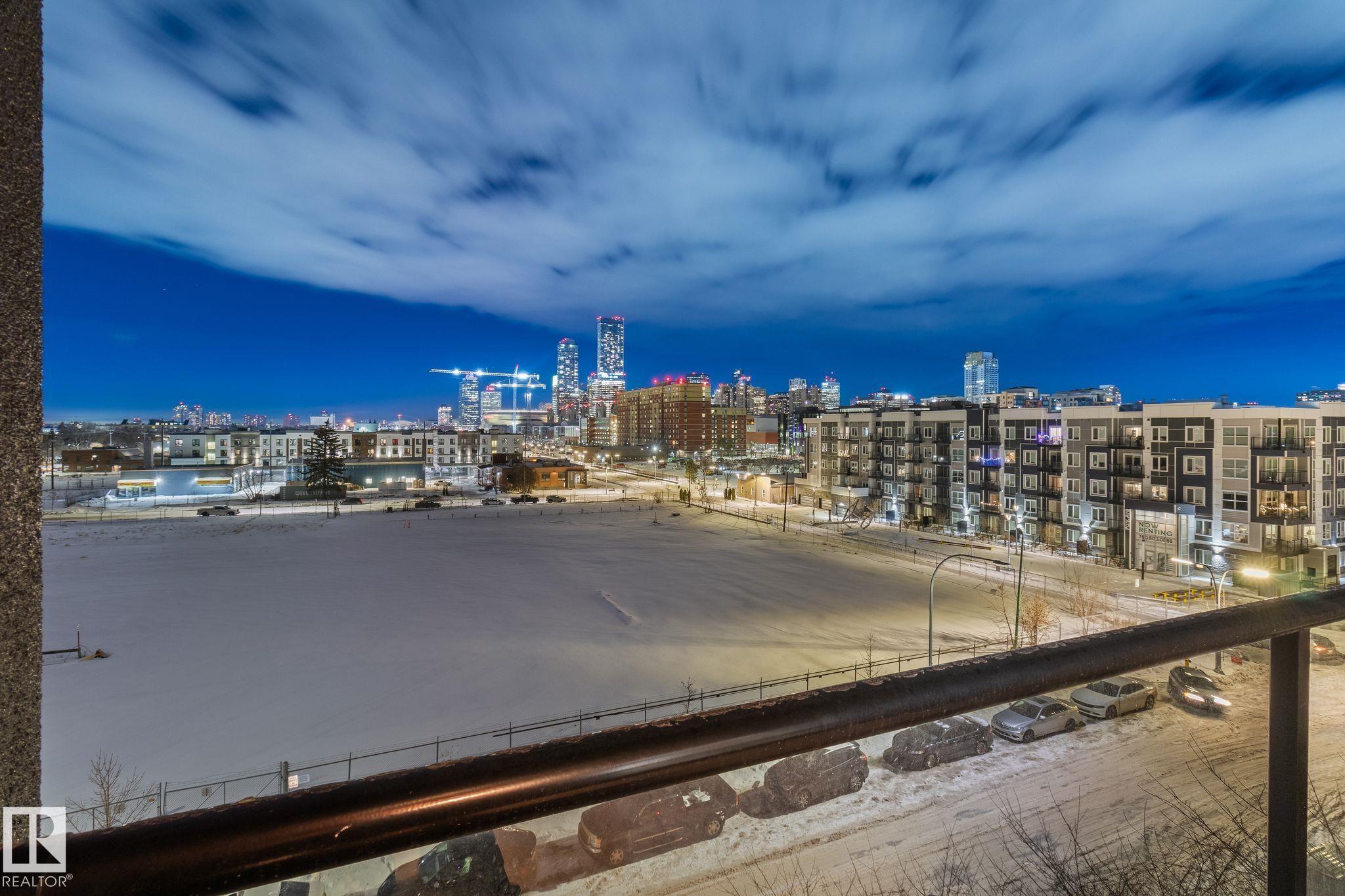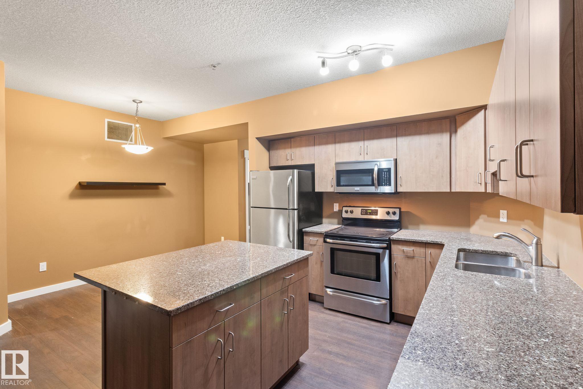 Minutes to downtown and close to Edmonton?s best restaurants, shopping, and nightlife, this 790 sq ft condo nails the ?easy city living? vibe. Tall ceilings and an open layout make the space feel bright and airy, while large windows bring in tons of natural light. The kitchen is the centerpiece with granite counters, a big island for prep and hosting, and stainless steel appliances. Wood style flooring keeps it clean and durable. The primary bedroom easily fits a king bed and includes a private dressing area that leads into a modern ensuite with a glass shower. A second room gives you options as a home office, guest space, or flex room. You also get a second full bathroom, in suite laundry, and air conditioning for summer comfort. Step outside to an oversized balcony with a gas line for your BBQ and plenty of room for patio furniture, perfect for summer evenings. Complete the package with underground parking for secure, year round convenience.