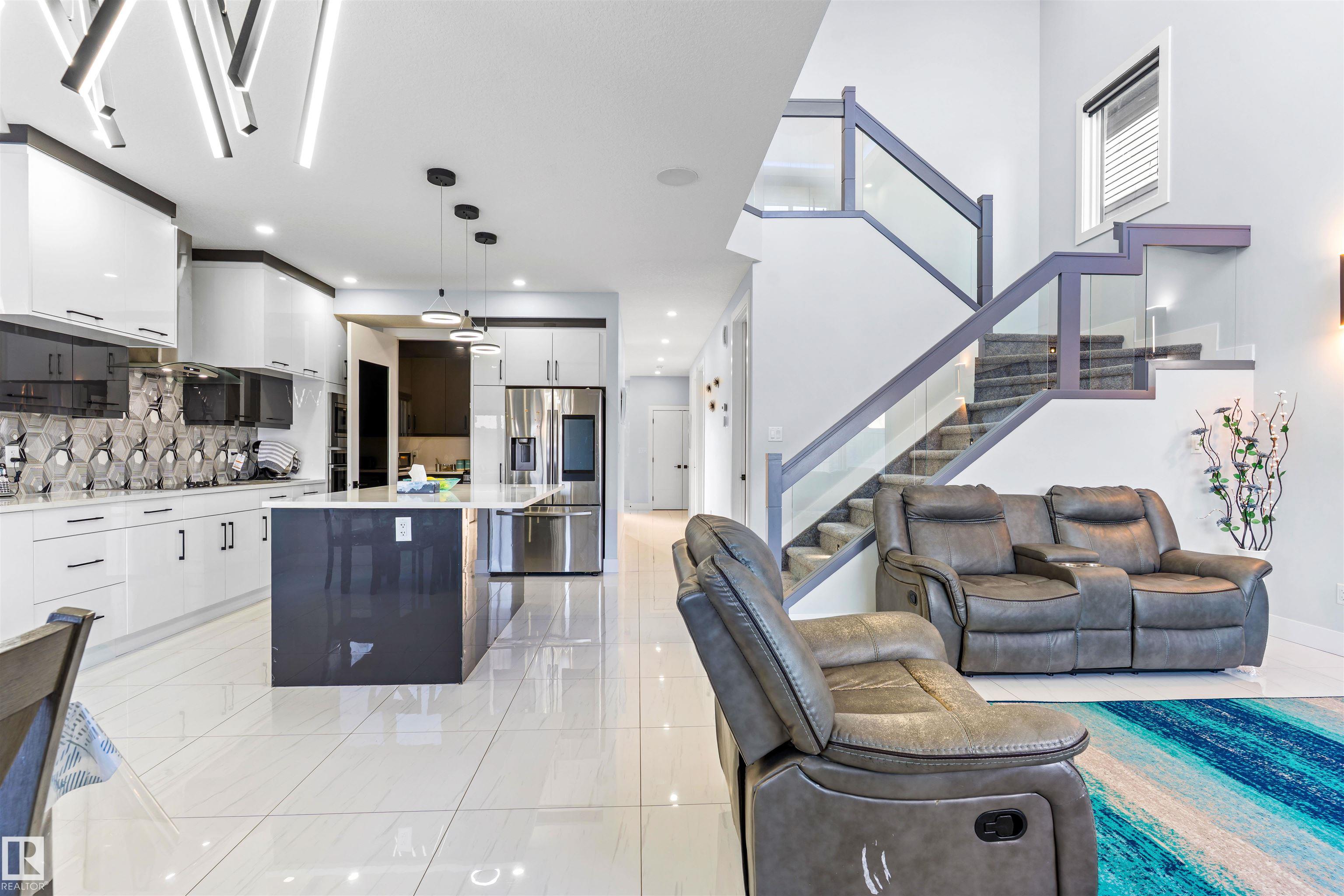 Welcome to this beautiful 2-storey home in the desirable community of Laurel offering 2,563+ sq ft of above-grade living space. This spacious home also features a separate entrance to the basement and a spice kitchen, making it perfect for large families and future basement development potential. The main floor offers a bright open layout with a large living room, family room, dining area, main kitchen with a separate spice kitchen, pantry, and a bedroom with a full 3-piece bathroom, ideal for guests or extended family. Upstairs features a spacious primary bedroom with a 5-piece ensuite and walk-in closet, along with two additional bedrooms, another full bathroom, and a large bonus room/den, providing plenty of space for comfortable family living. The unfinished basement with separate entrance offers excellent potential for future development or a secondary suite. Located in Laurel, this home provides easy access to Anthony Henday Drive and Whitemud Drive and is close to schools, parks, shopping.