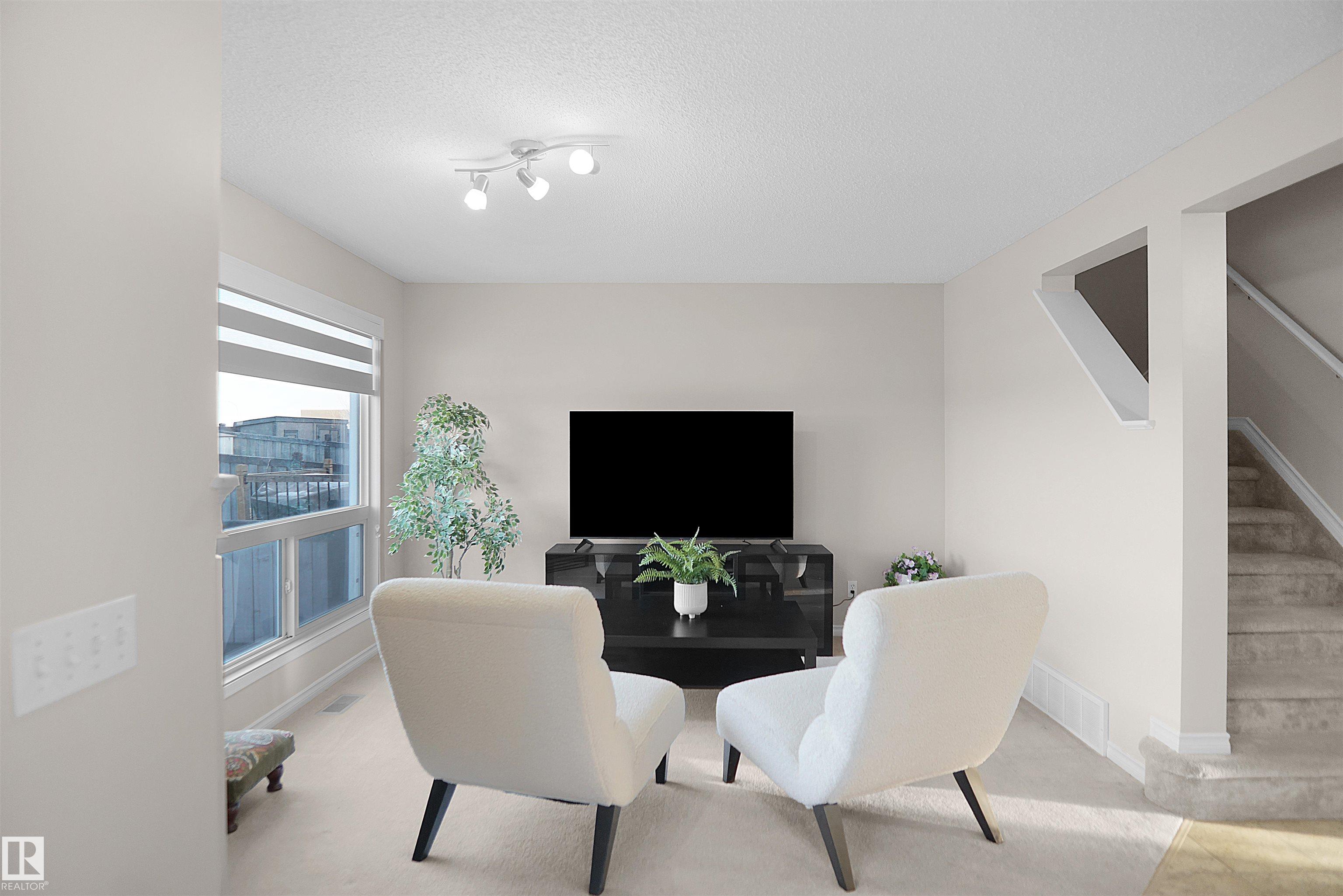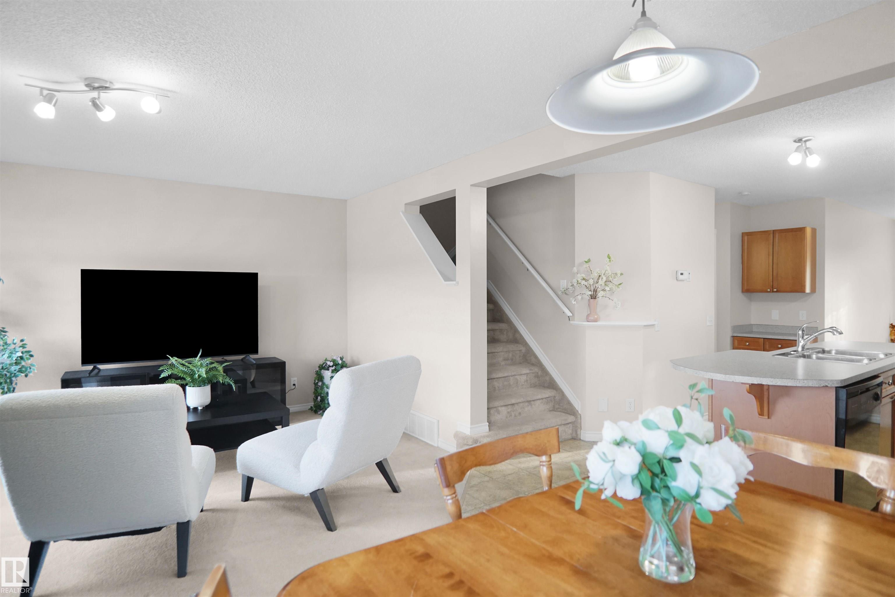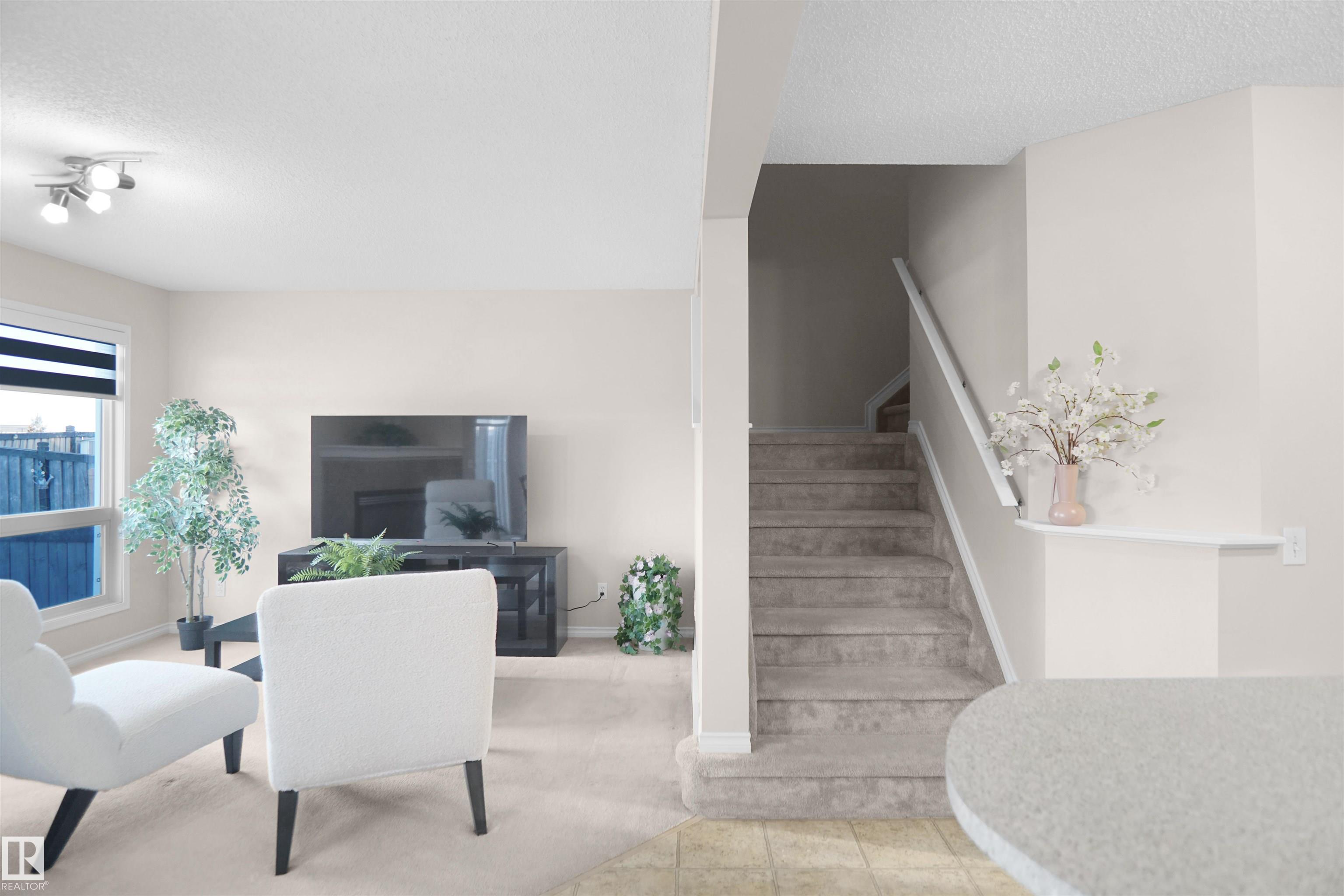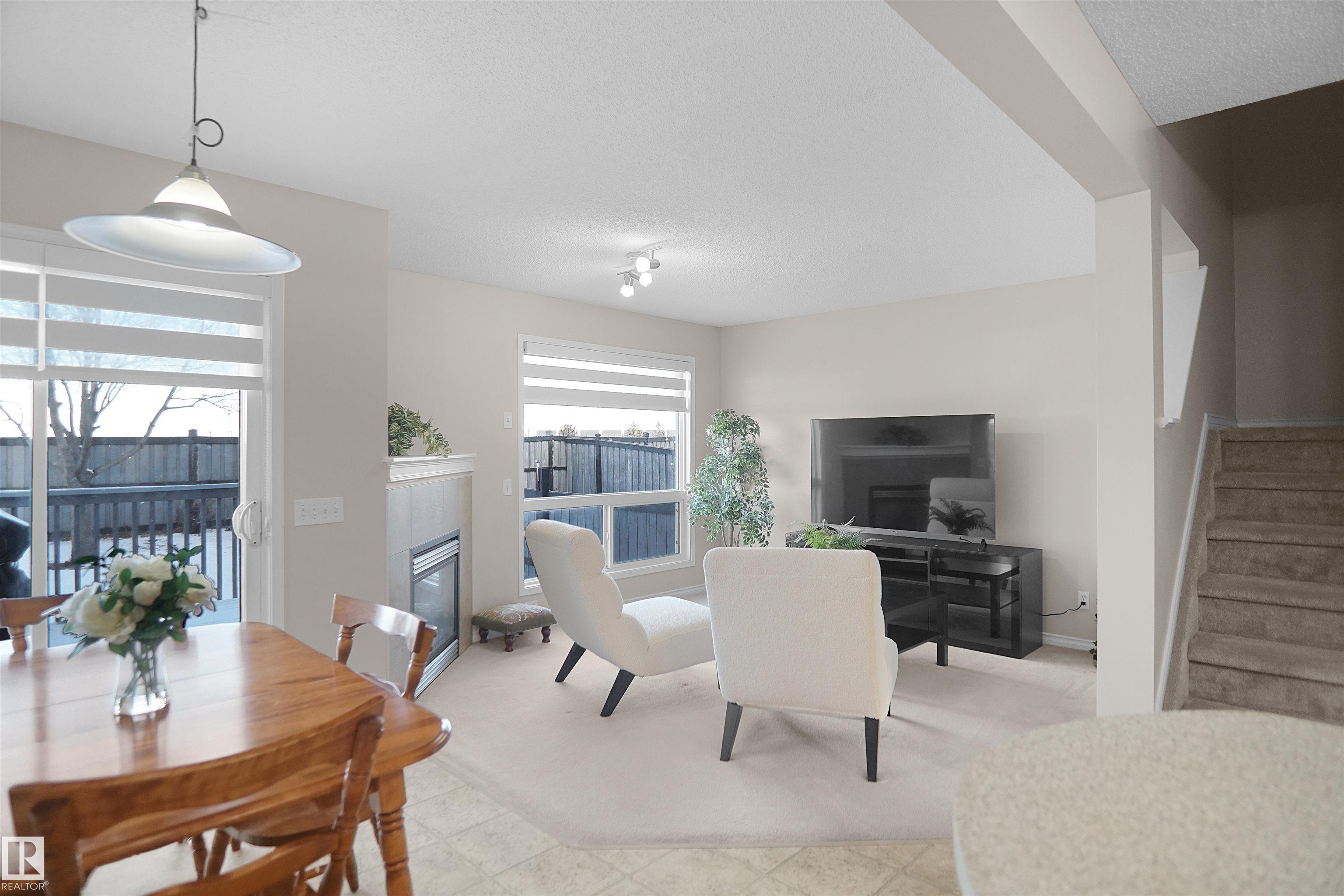 Welcome to this well-maintained half duplex offering over 2000sqft of living space with a single attached garage, a functional layout and plenty of natural light throughout. The main floor creates a comfortable flow between the living, dining, and kitchen areas, making it ideal for everyday living. The kitchen features an island, pantry, and sliding patio doors that lead to the deck, perfect for enjoying the backyard space with open field views. The living area is warm and inviting with a fireplace. Upstairs you?ll find three bedrooms, including the primary bedroom with a walk-in closet and private ensuite. An additional full bathroom completes the upper level. The main floor includes a half bathroom for guests. The finished basement provides additional living space with a family room, fourth bedroom, and a full bathroom, offering flexibility, a home office, or growing families. Located close to schools, shopping, parks, and other amenities. This home combines comfort, space, and a convenient location.