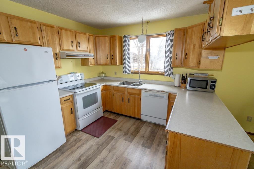 Welcome to this well-maintained family home located in the Village of Myrnam. Offering a functional and spacious layout, the main floor features three well-sized bedrooms, a comfortable living area, and plenty of natural light throughout. The fully finished walk-out basement provides additional living space, ideal for a family room, recreation area, or entertaining. Enjoy the warmth of the wood-burning fireplace and unwind in the cozy sauna, creating a relaxing retreat within your own home. Outside, the mature yard offers established trees and space to enjoy the outdoors, while the walk-out design provides convenient access to the backyard. This property presents a great opportunity for those seeking comfortable living in a quiet small-town setting.