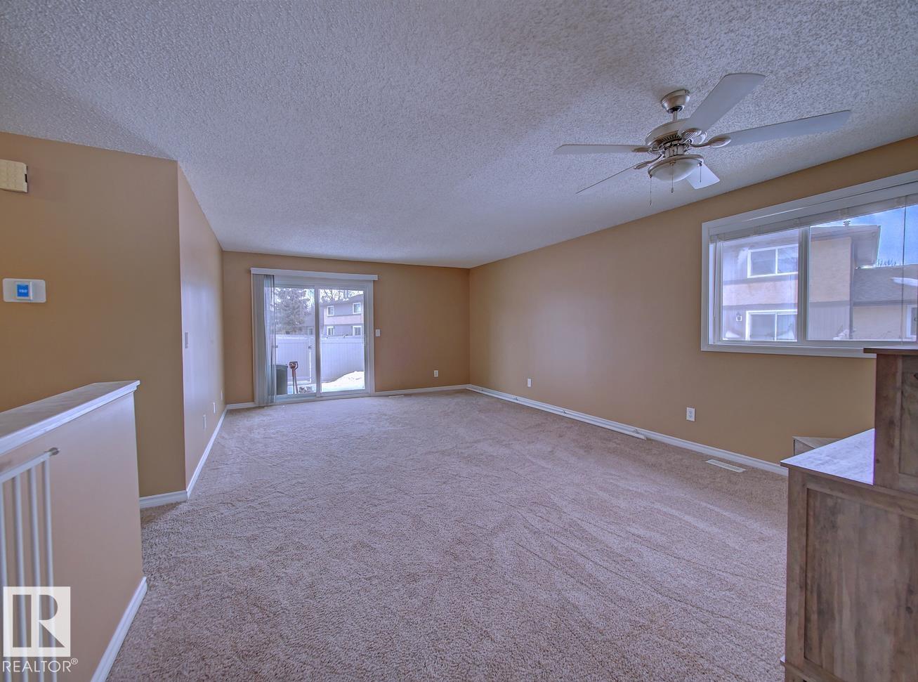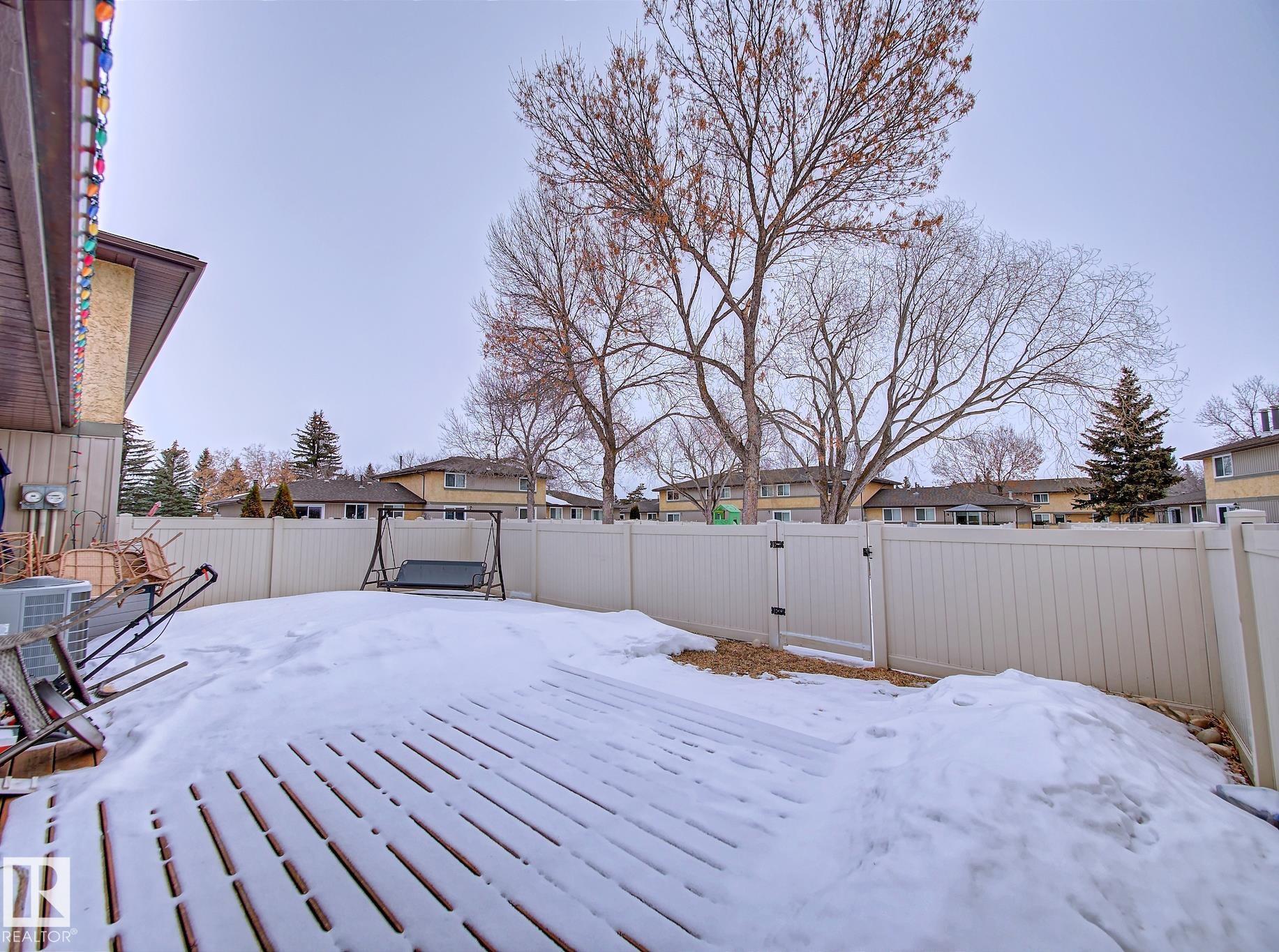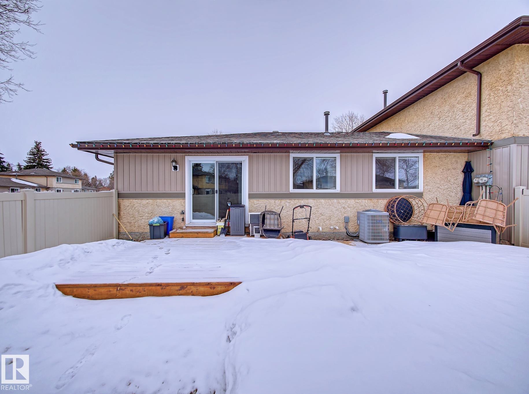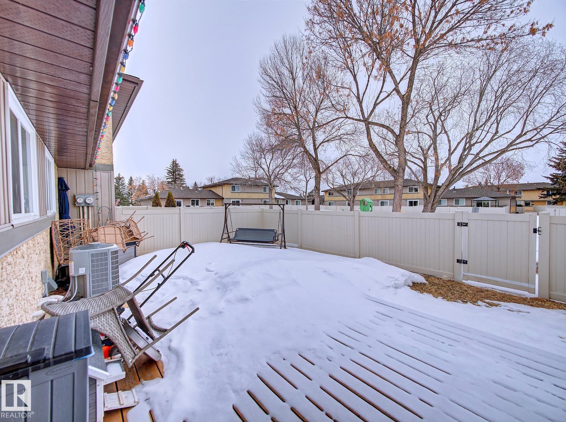 Backing onto a green space and park, this well-cared-for bungalow-style condo in CountrySide offers comfort, space, and a fantastic location. The main floor features a bright, functional layout with a spacious kitchen offering white cabinetry and plenty of counter space, a formal dining area, and a large living room with patio doors leading to your deck and fenced backyard?perfect for relaxing or entertaining. Three generous bedrooms are located on the main level, including a primary bedroom with a 2-piece ensuite, large closet, and space for a king-sized bed. A full 4-piece bathroom completes the main floor. The open basement provides laundry space, room for a future rec room, plenty of storage, and a rough-in for a future bathroom. Ideally located close to schools, parks, walking trails, and the river valley.
