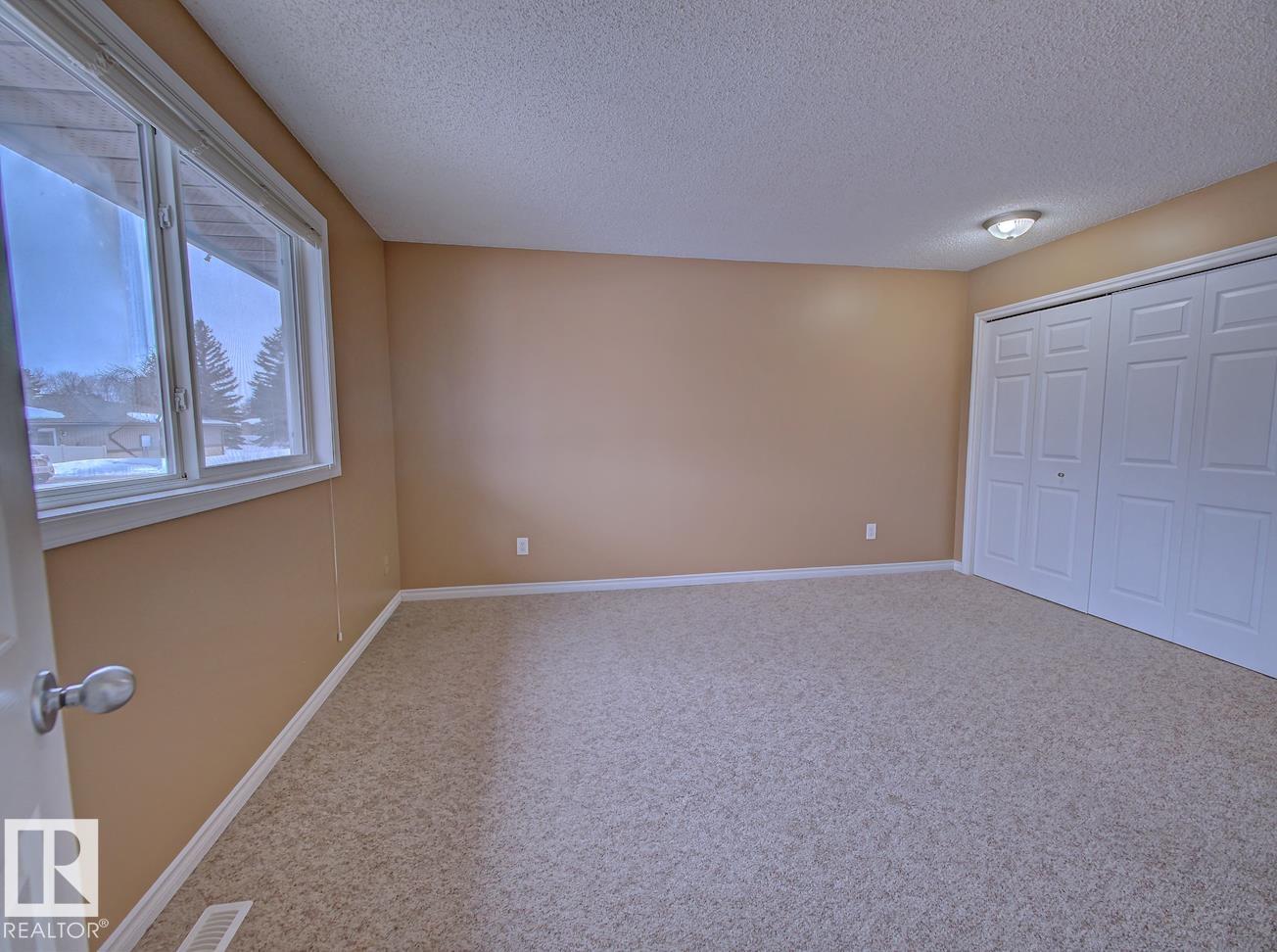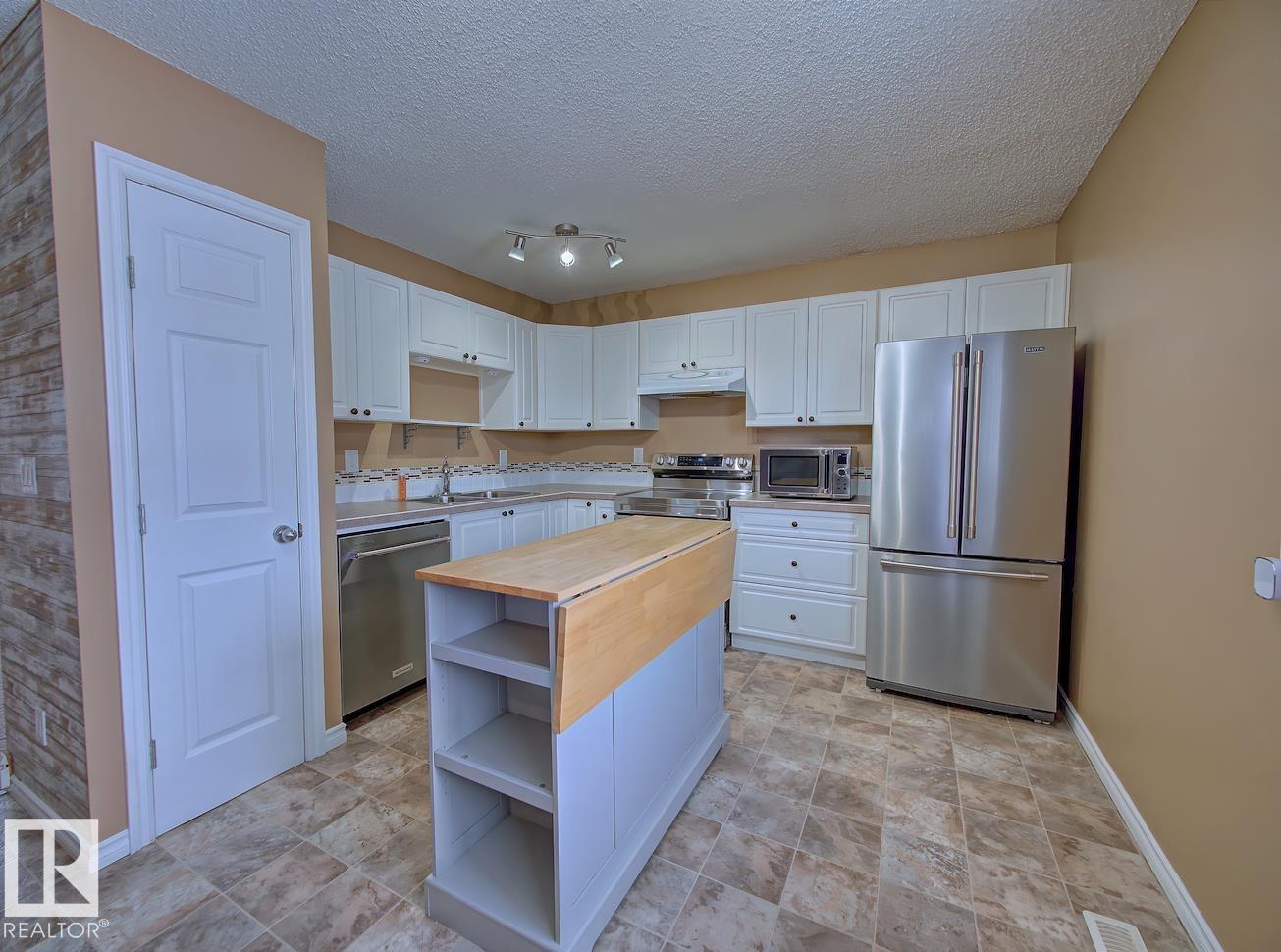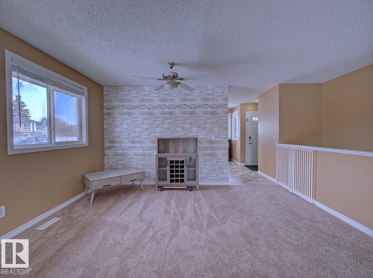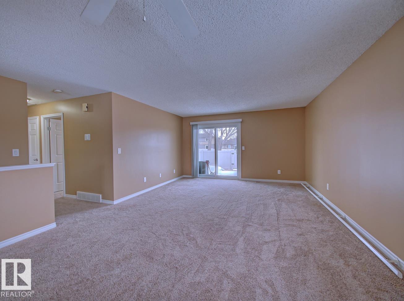 Backing onto a green space and park, this well-cared-for bungalow-style condo in CountrySide offers comfort, space, and a fantastic location. The main floor features a bright, functional layout with a spacious kitchen offering white cabinetry and plenty of counter space, a formal dining area, and a large living room with patio doors leading to your deck and fenced backyard?perfect for relaxing or entertaining. Three generous bedrooms are located on the main level, including a primary bedroom with a 2-piece ensuite, large closet, and space for a king-sized bed. A full 4-piece bathroom completes the main floor. The open basement provides laundry space, room for a future rec room, plenty of storage, and a rough-in for a future bathroom. Ideally located close to schools, parks, walking trails, and the river valley.