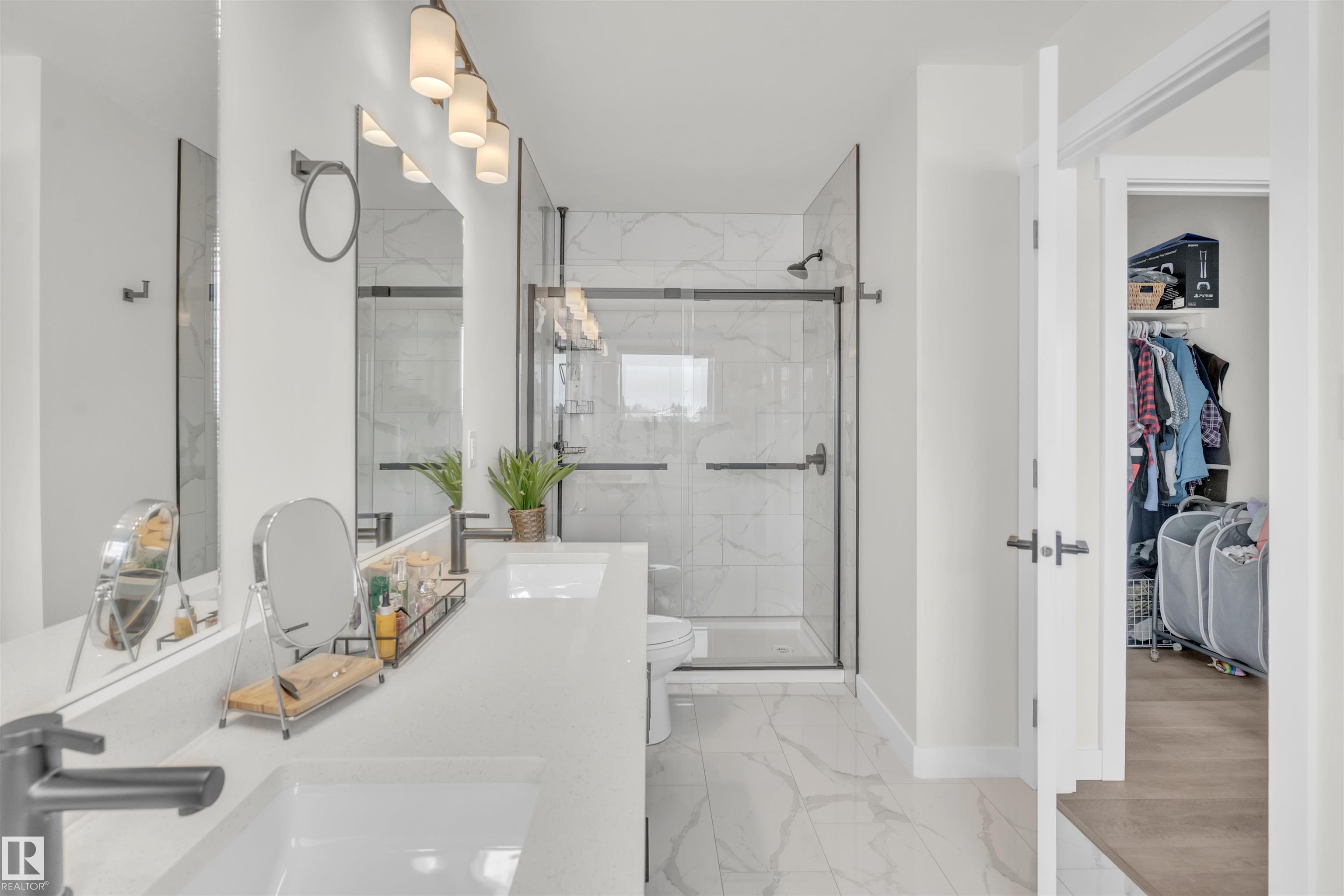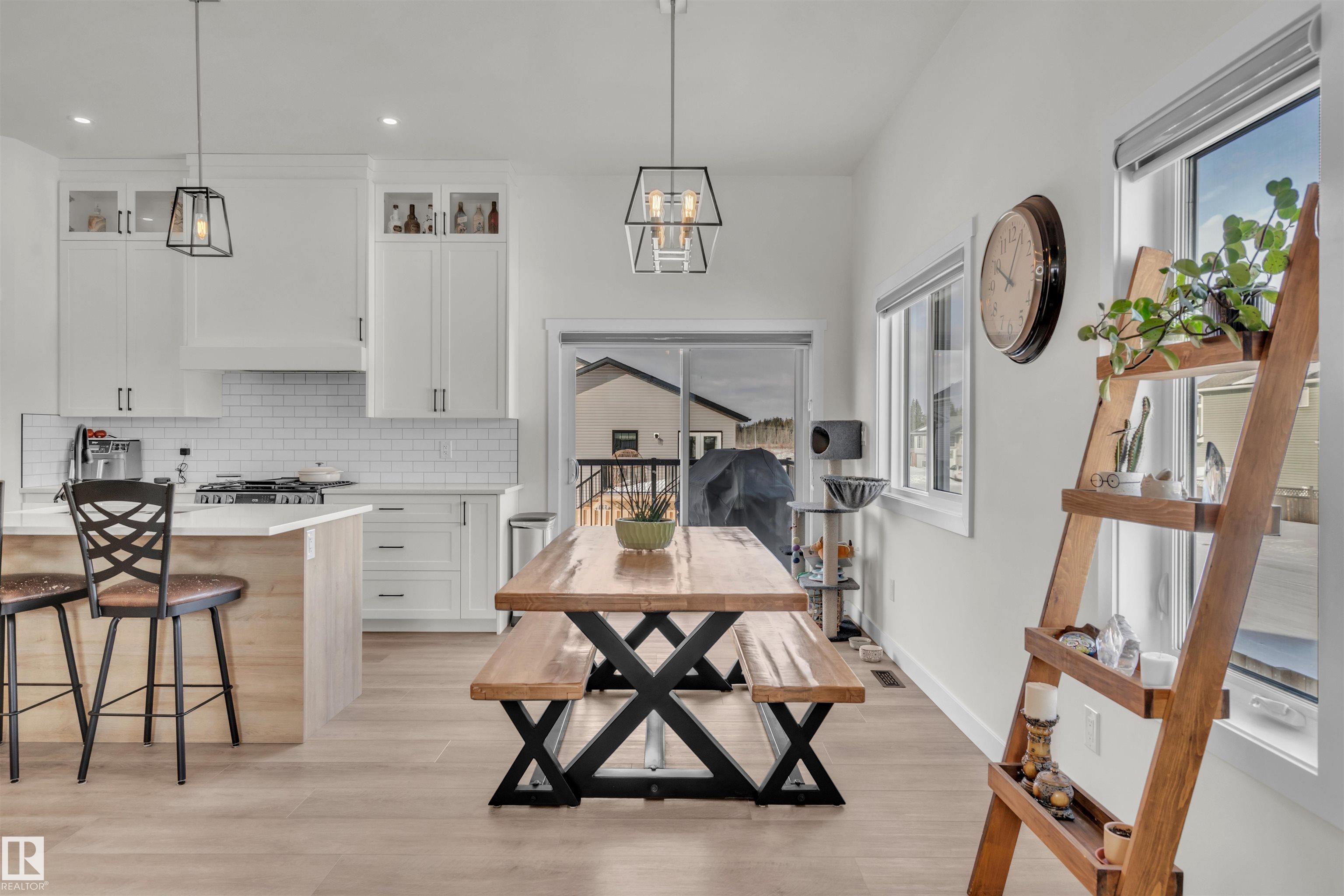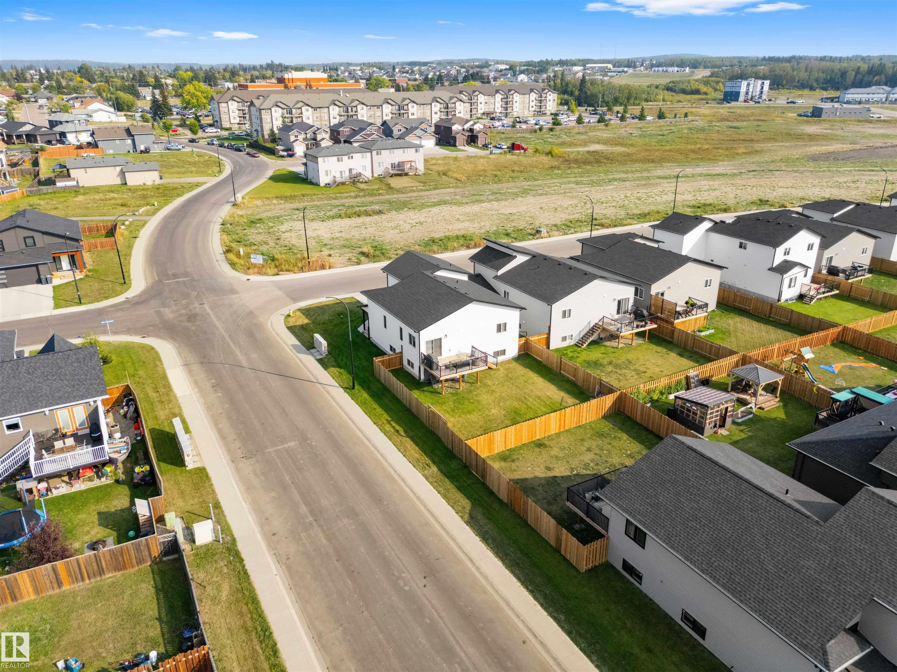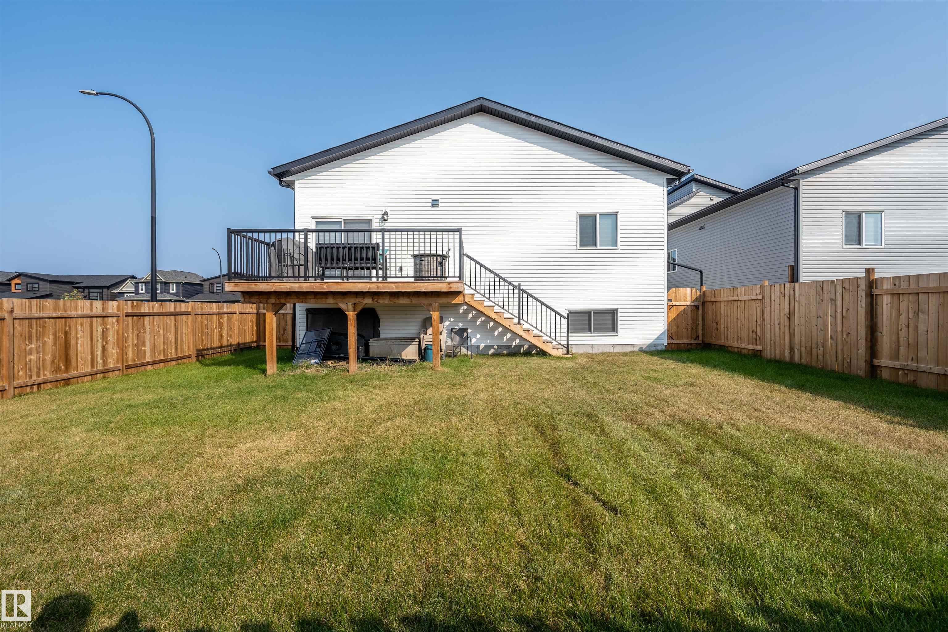 Modern Hailey style bi-level, featuring a double heated garage, perfectly located in Cold Lake North close to Kinosoo Beach, the hospital, and walking trails! As you enter the front door you are welcomed by a generous entry with access to the garage. Spacious living room with 10ft ceilings includes black shiplap feature fireplace. The kitchen showcases modern white cabinetry with quartz countertops, a large island, and stainless steel appliances including gas range. To complete this floor are two bedrooms and main bathroom along with dedicated laundry room. Up a few steps you enter the spacious primary bedroom with 2 walk in closets, and FULL ensuite with dual sinks, tiled glass shower & separate tub. The fully finished basement features in-slab heat and consists of a family room, 2 more bedrooms and full bathroom. The home has Central AC and custom window coverings for everyday living and optimal comfort. The yard is fully landscaped and fenced and includes a concrete driveway and sidewalk & large gate.