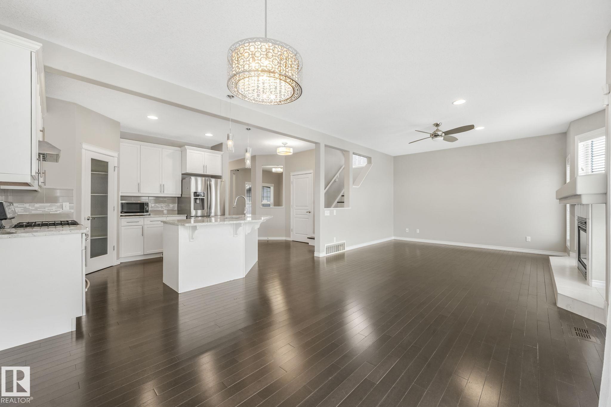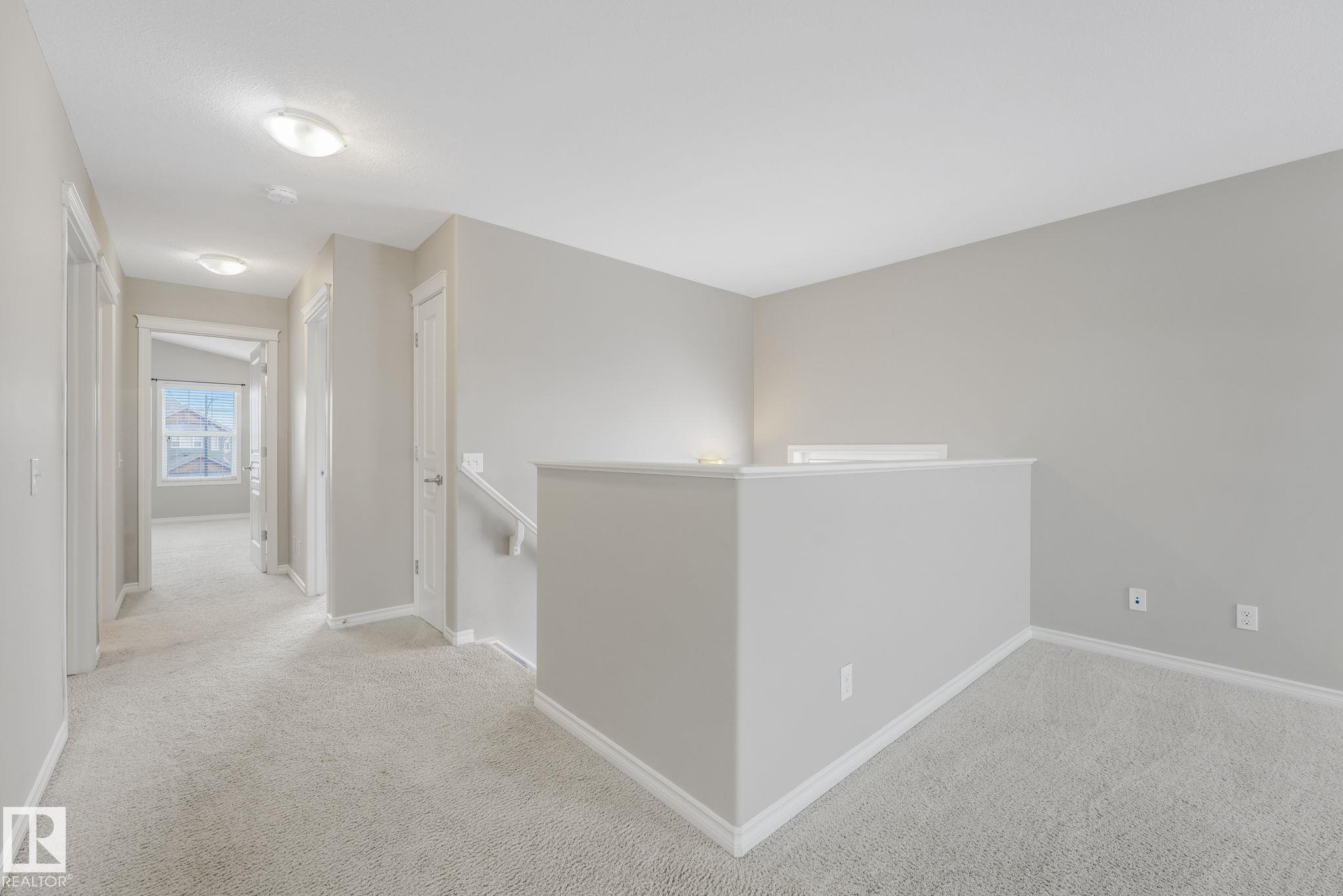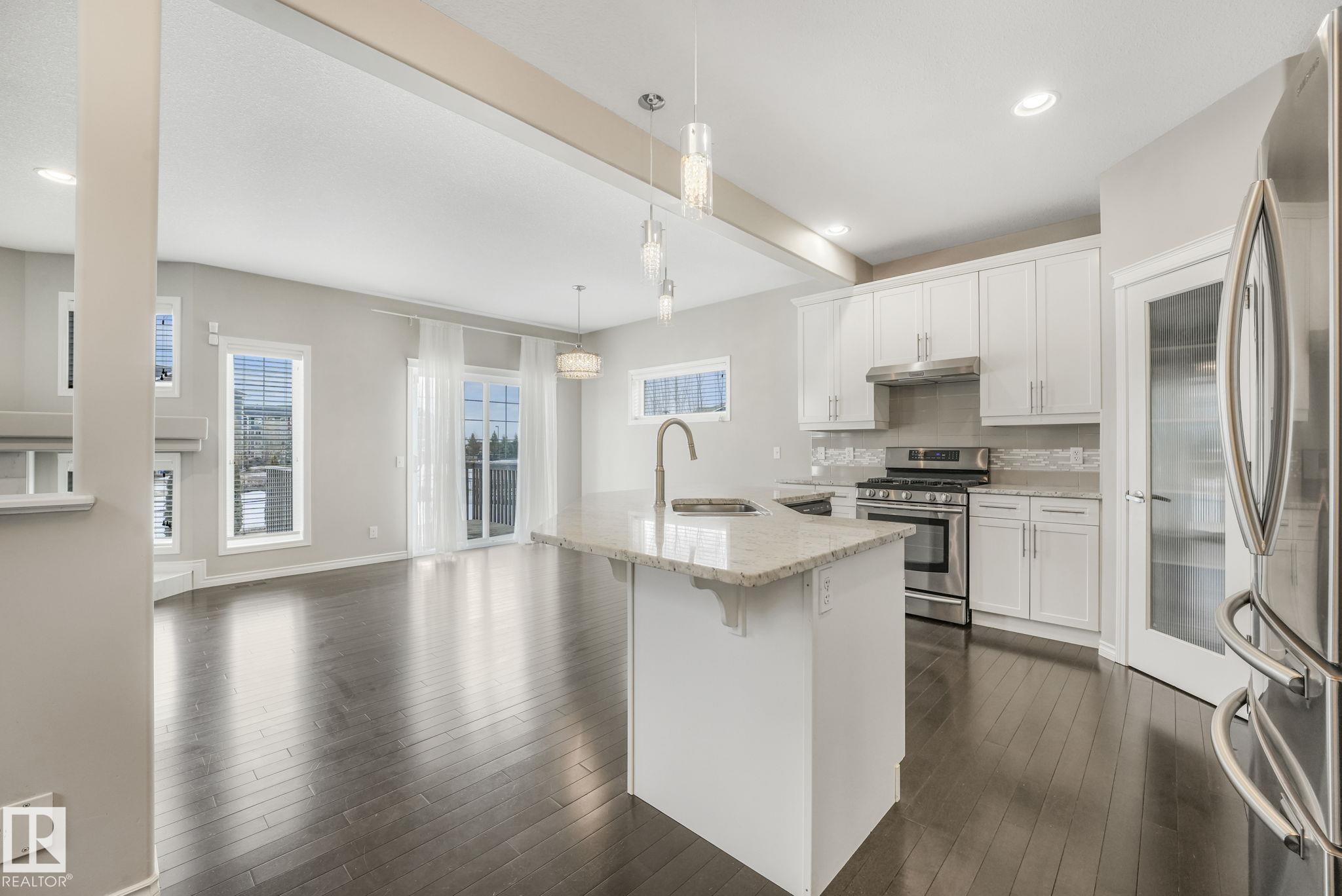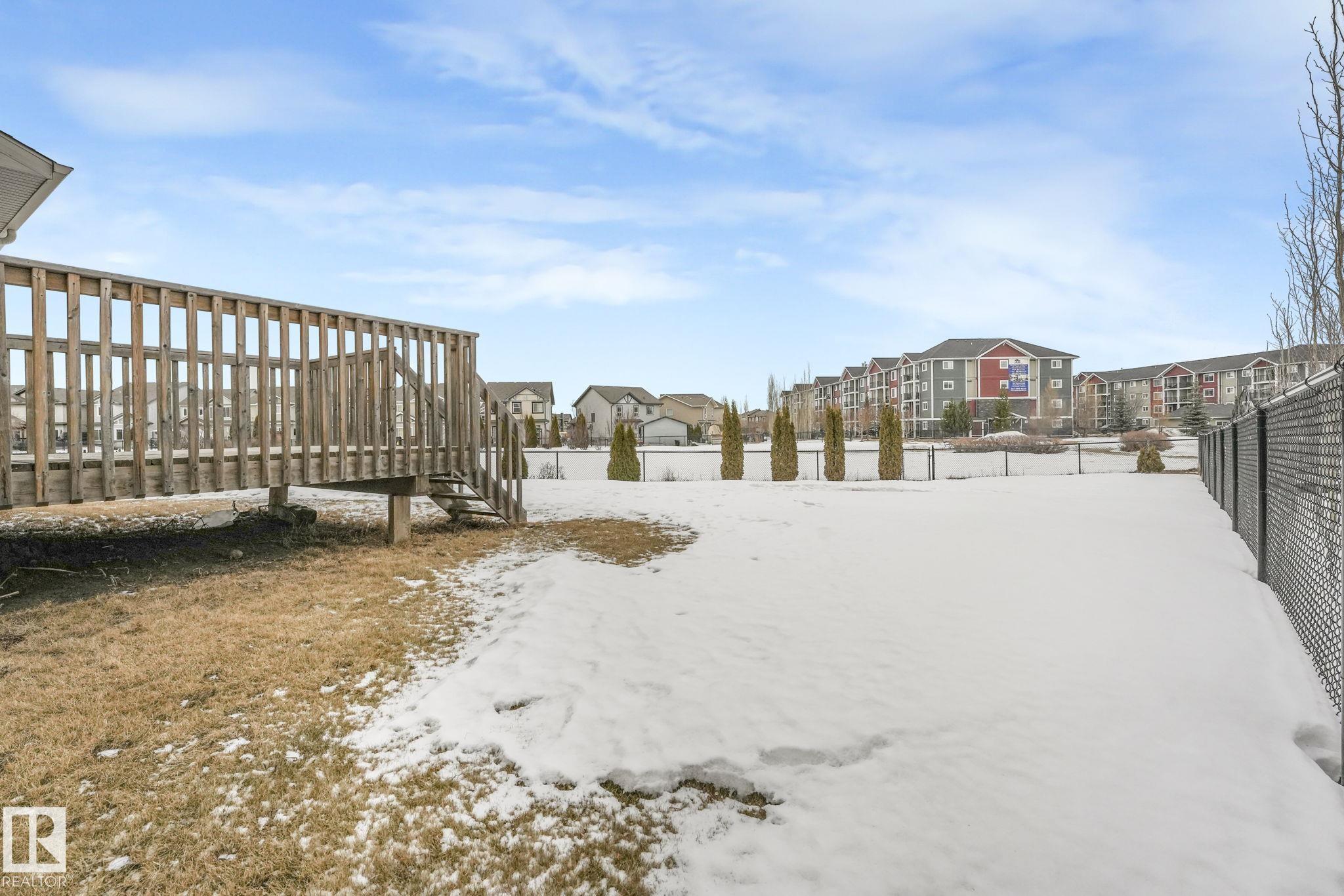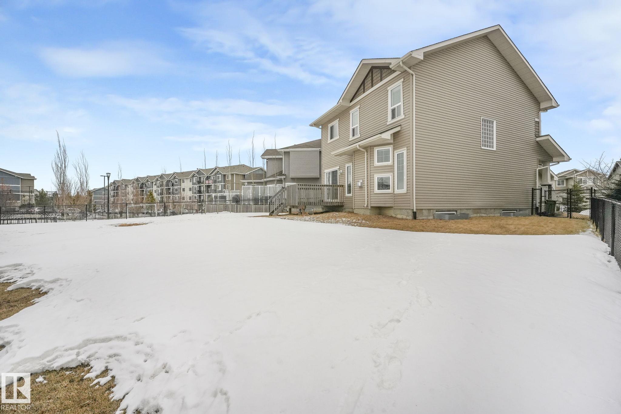 This beautifully maintained 2-storey home offers 2,150 sq ft of living space, on a rare 7,500 sq ft pie-shaped/cul-du sac lot & backing onto a greenbelt. Built in 2012, this home features 4 bedrooms up, a main floor office, & move-in ready! The bright, open-concept showcases: hardwood flooring, large windows, a spacious living room w/ a mantle fireplace. The chef-inspired corner kitchen includes: granite countertops, gas range, stainless steel appliances, corner pantry, tile backsplash, & an eat-up bar, w/ picturesque views of the back yard. The kitchen flows into a sunny breakfast nook w/ direct access to the patio. Upstairs offers a generous bonus room, 3 seondary bedrooms, a full 4-piece bath, & a spacious primary suite, featuring: vaulted ceilings, a walk-in closet, & an upgraded ensuite. Located walking distance to all your daily ameneties, schools, & short drive to hwy 2 and Henday... this home is the perfect blend of space, comfort, & convenience. You're really going to love this one!