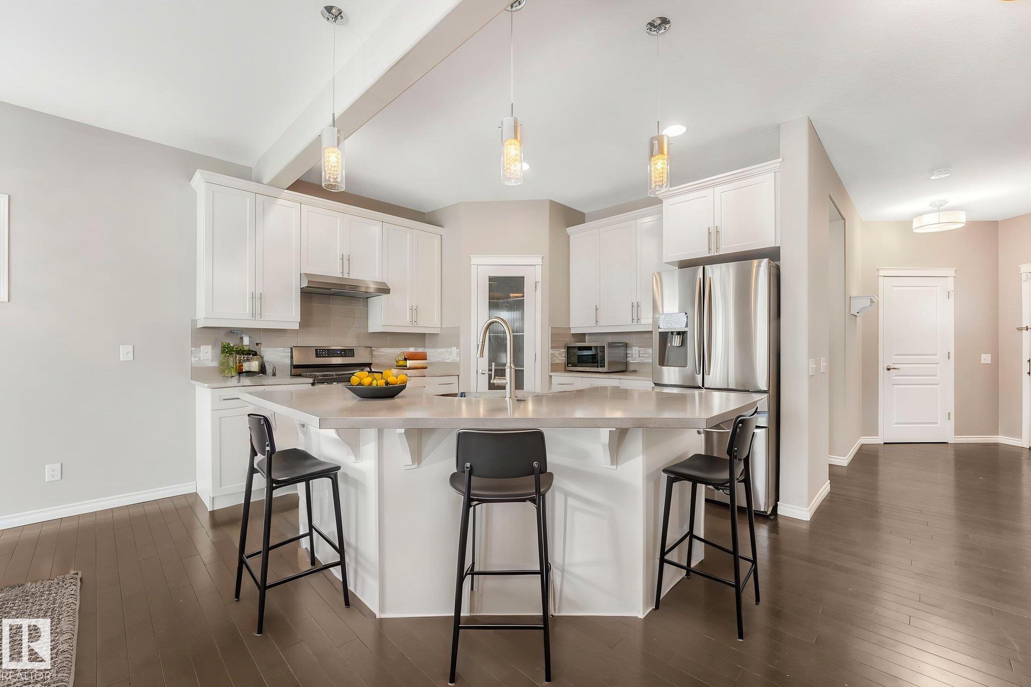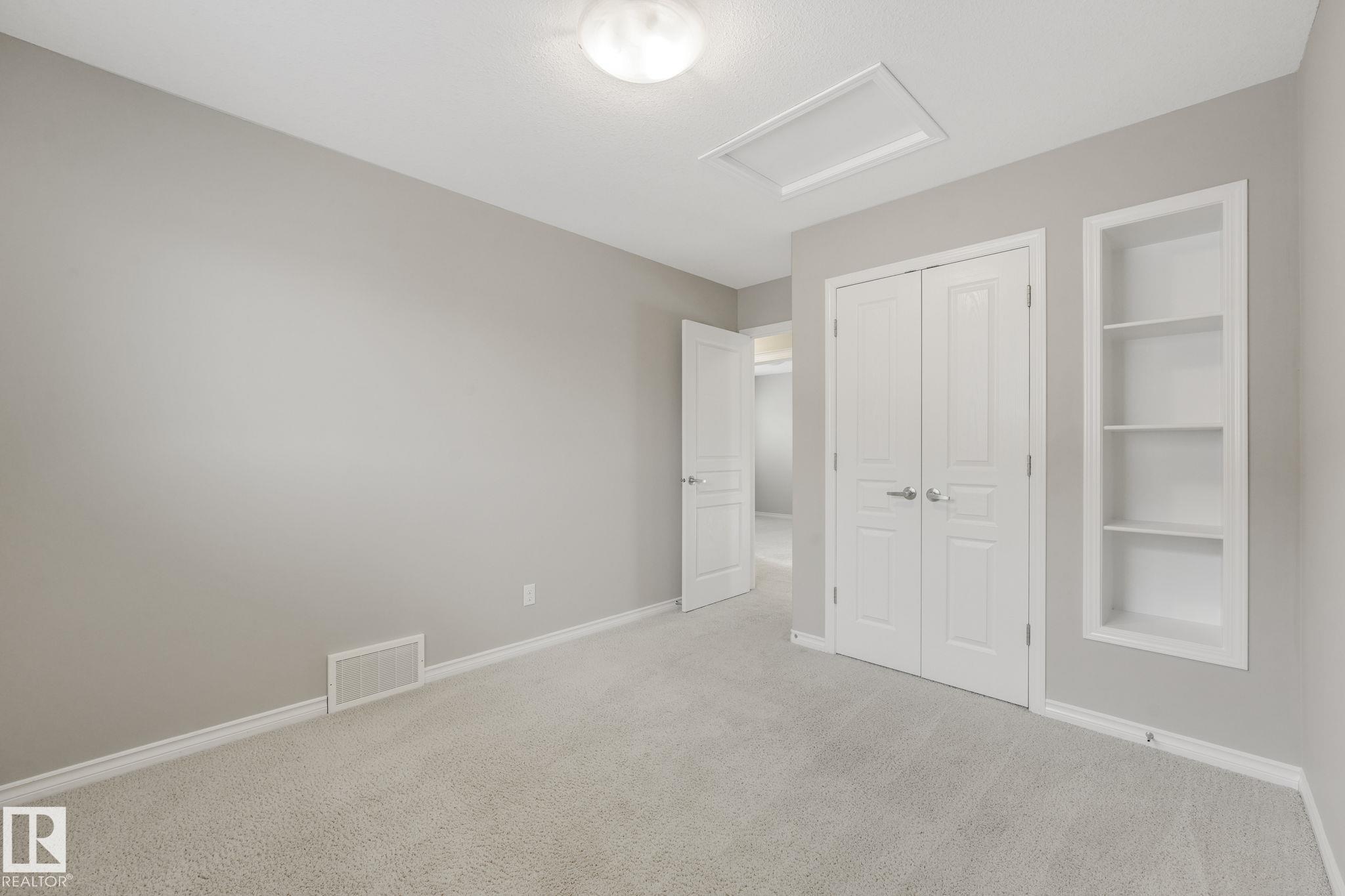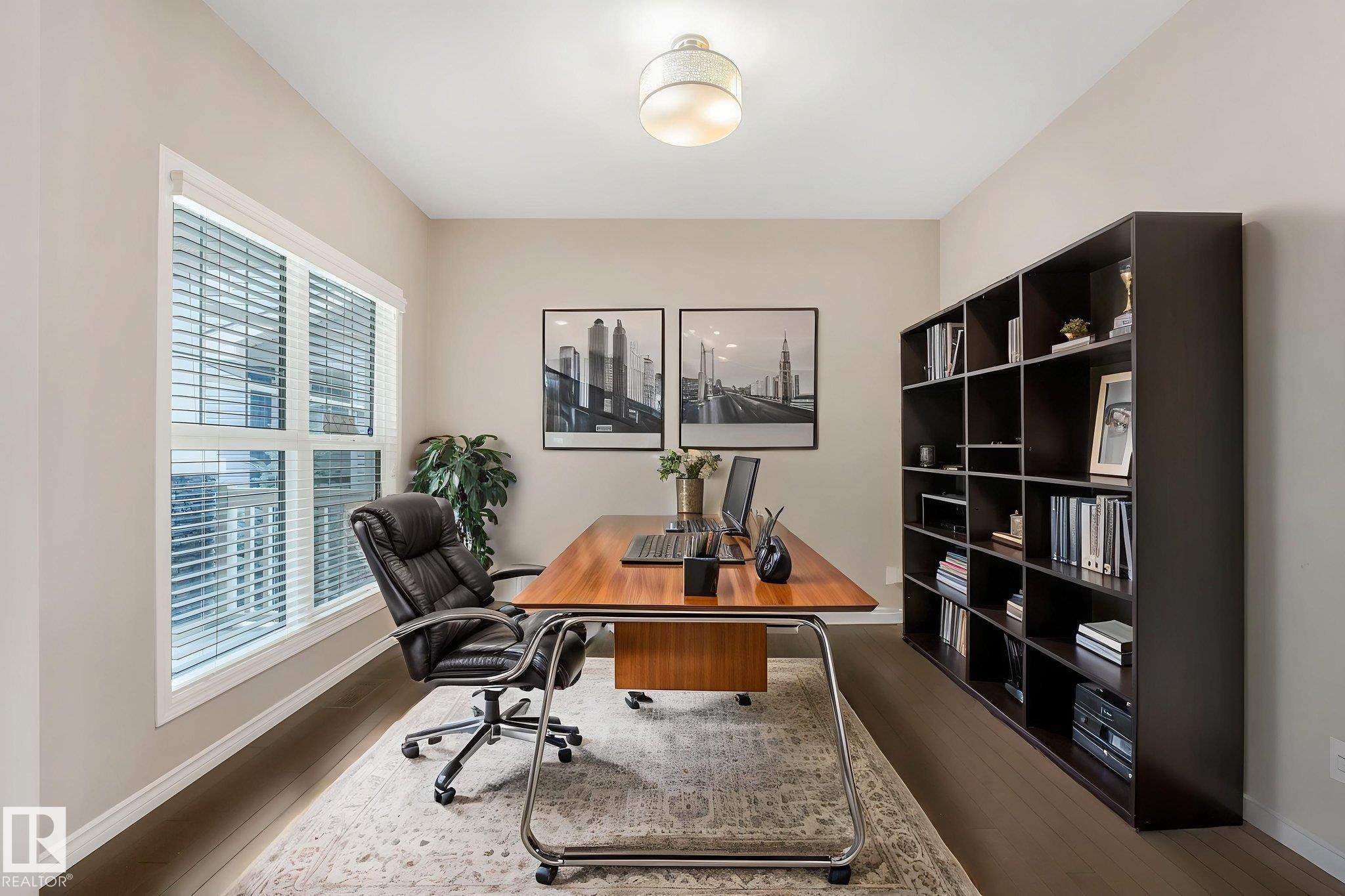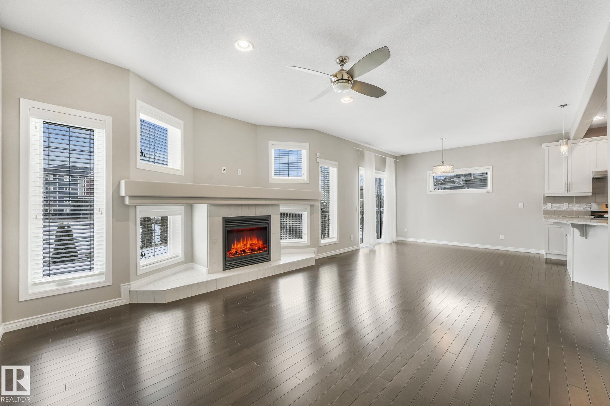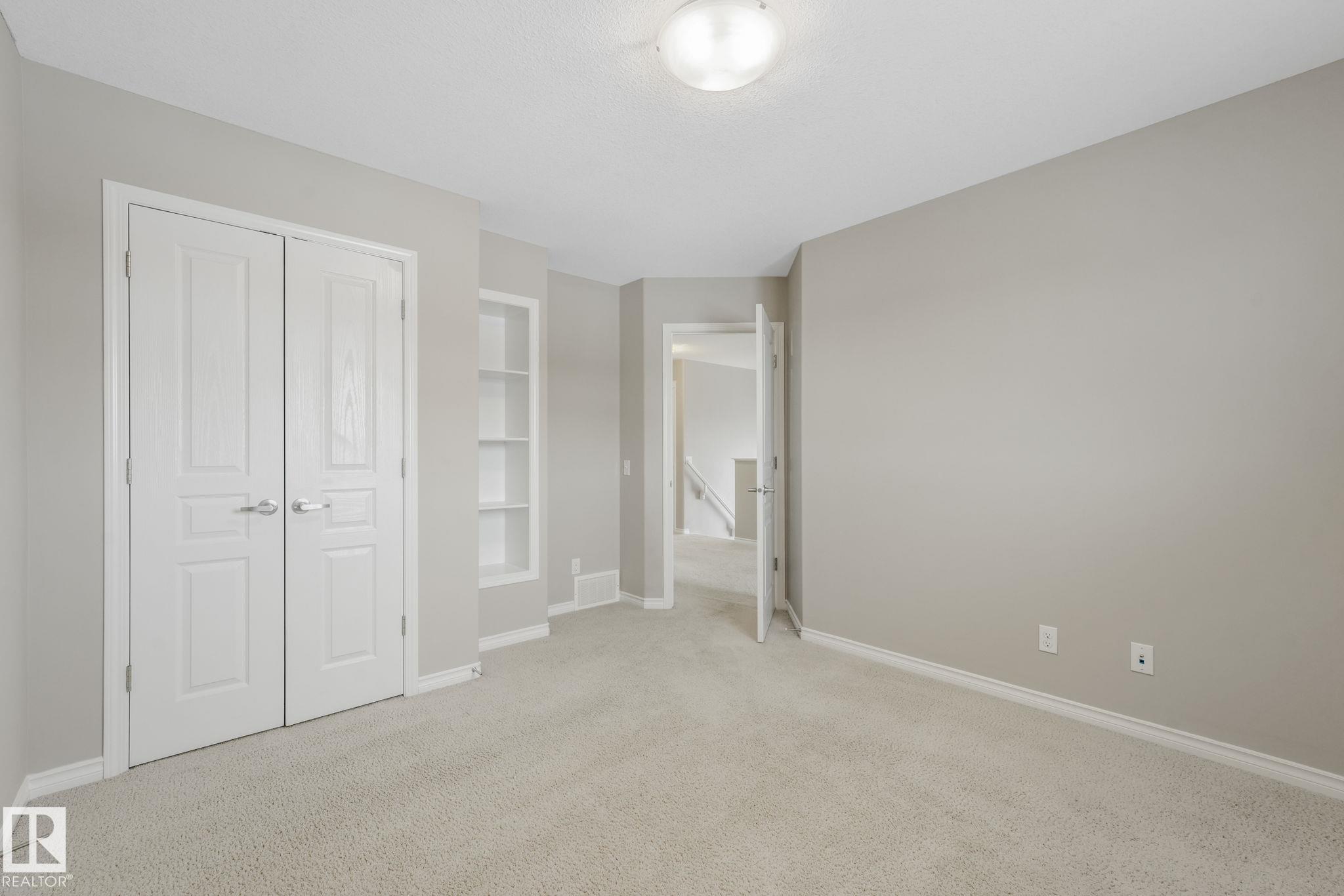 This beautifully maintained 2-storey home offers 2,150 sq ft of living space, on a rare 7,500 sq ft pie-shaped/cul-du sac lot & backing onto a greenbelt. Built in 2012, this home features 4 bedrooms up, a main floor office, & move-in ready! The bright, open-concept showcases: hardwood flooring, large windows, a spacious living room w/ a mantle fireplace. The chef-inspired corner kitchen includes: granite countertops, gas range, stainless steel appliances, corner pantry, tile backsplash, & an eat-up bar, w/ picturesque views of the back yard. The kitchen flows into a sunny breakfast nook w/ direct access to the patio. Upstairs offers a generous bonus room, 3 seondary bedrooms, a full 4-piece bath, & a spacious primary suite, featuring: vaulted ceilings, a walk-in closet, & an upgraded ensuite. Located walking distance to all your daily ameneties, schools, & short drive to hwy 2 and Henday... this home is the perfect blend of space, comfort, & convenience. You're really going to love this one!