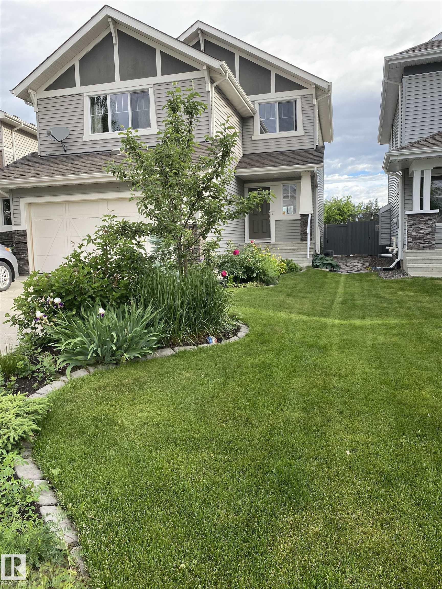 Beautiful Landmark built home located in the popular community of The Hamptons. Enter to a large open foyer entry which opens to the living room, large kitchen and dining room area all with hardwood floors. Modern kitchen with pantry, stainless steel appliances and induction stove. Upper level has a large bonus room with corner gas fireplace. Three large bedrooms, including a large primary suite with 4-piece ensuite with soaker tub and shower. 4-piece bathroom completes the upper level. Lower level is professionally finished with beautiful 4-piece bathroom, bedroom and large family room space. Custom window coverings throughout the home. Double oversized insulated attached garage. Backyard has a large deck and yard with exterior shed, flowerbeds and a garden. Enjoy summertime with central air conditioning. On-demand hot water and central vacuum system recently added. Quiet cul-de-sac location with walking trails close by and easy access to transit routes and shopping centers.