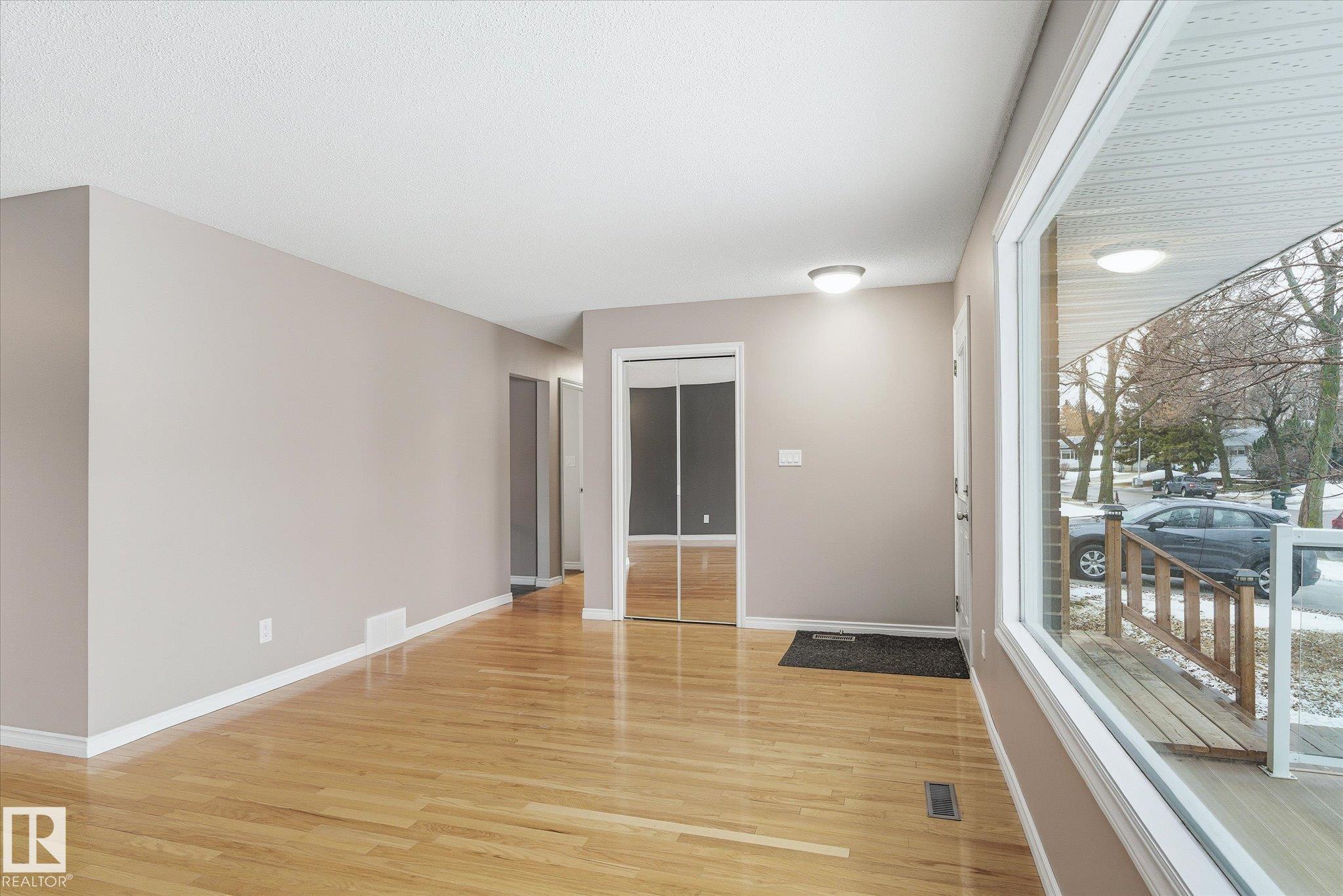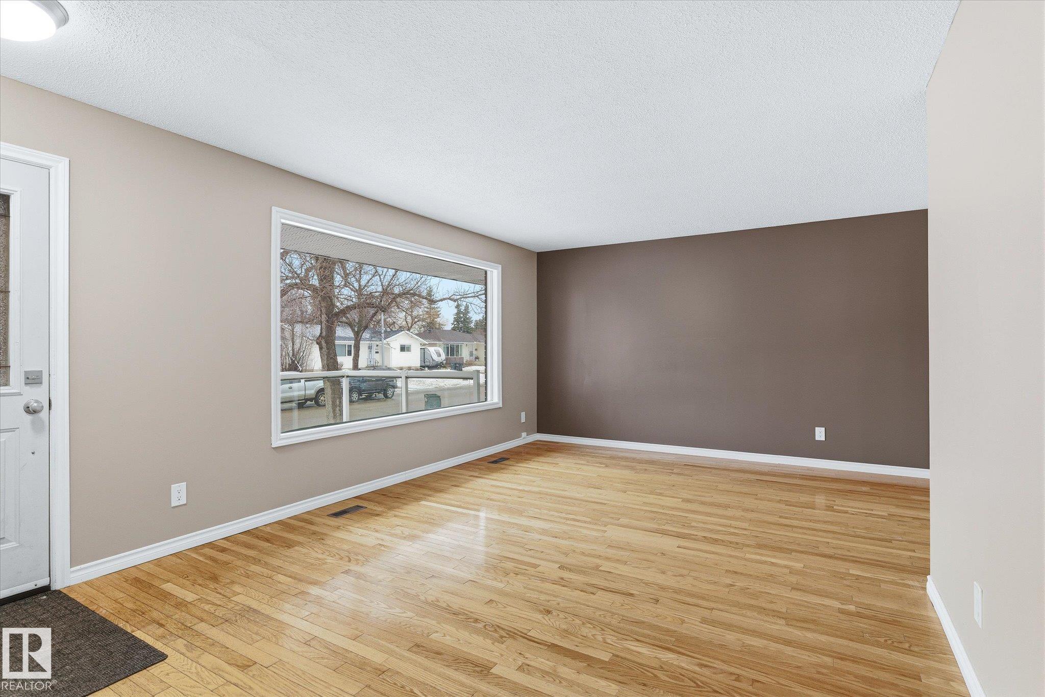 Welcome to a well-maintained, AIR-CONDITIONED bungalow featuring beautiful COMPOSITE FRONT DECK with GLASS RAILINGS in the mature community of Westboro! Upon entry, you?re greeted by a bright and spacious living/dining area with HARDWOOD FLOORS THROUGHOUT. The kitchen has been updated with glass-top stove, BACKSPLASH and ample cabinetry. The main floor also offers a generous PRIMARY BEDROOM, two additional bedrooms and a FULL 4PC BATH. The FULLY-FINISHED BASEMENT features a large family room with a cozy WOOD-BURNING FIREPLACE, a 4th Bedroom, OFFICE/DEN, 2nd full bath, laundry area and abundant storage space. A SEPARATE ENTRANCE leads to a CONCRETE PATIO and a huge, beautifully landscaped yard. An OVERSIZED DETACHED DOUBLE GARAGE with ample front parking completes the property. Recent updates include a new roof, fresh paint, newer furnace & A/C. Conveniently located just minutes from all shopping (including Costco), schools, and A. Henday Dr., this is an ideal home for a growing family! Don?t miss out!