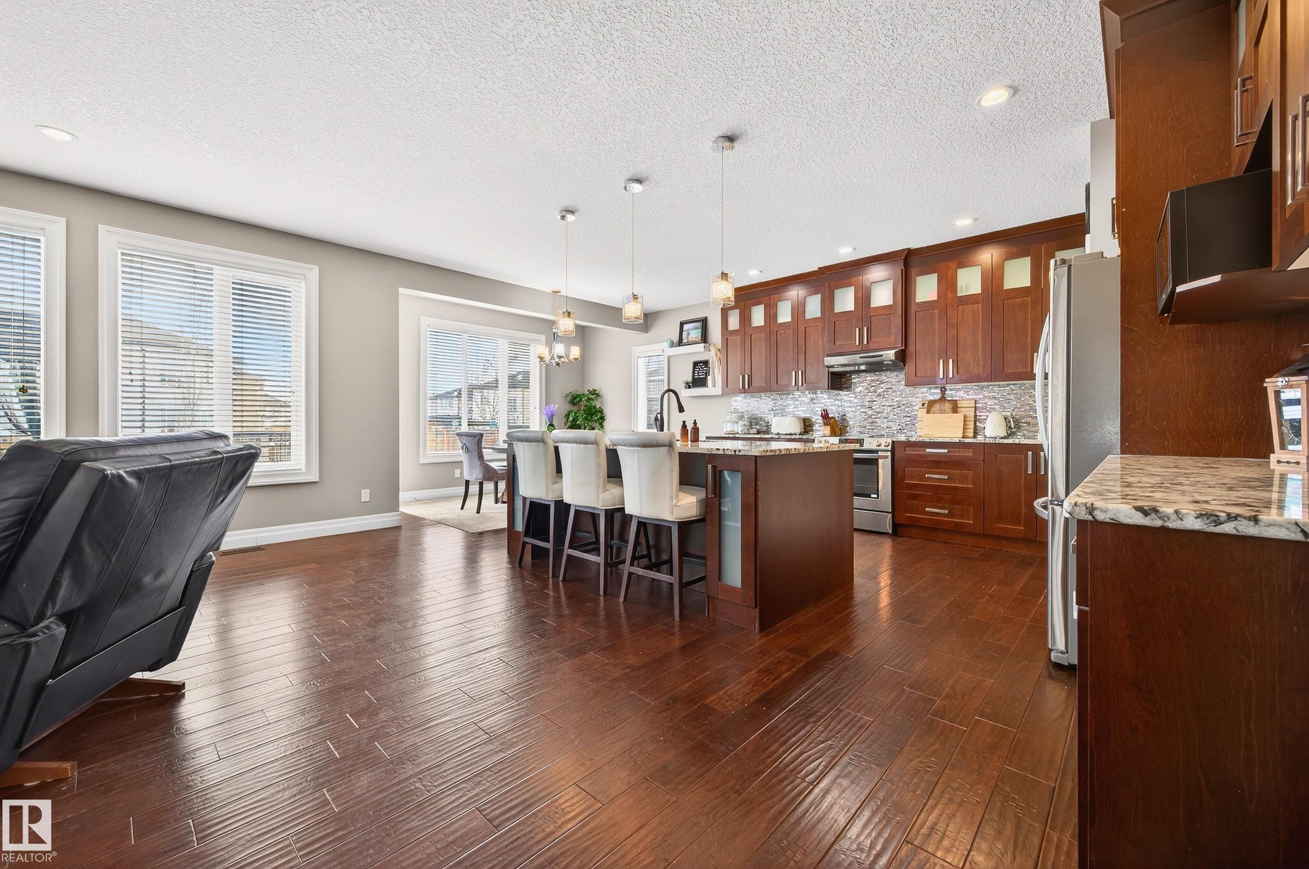 Welcome to your dream home. This stunning 2-storey offers over 2,800 sq ft of thoughtfully designed living space. The main floor blends style with functionality offering a large, beautifully appointed kitchen as the heart of the home, featuring generous counter space and elegant finishes. Just off the main living area is a spacious den/office & full bathroom, offering added convenience for guests or multi-generational living. Upstairs, the home continues to impress with a huge bonus room and FOUR bedrooms. The expansive primary bedroom is complete with a gorgeous 5-piece spa-inspired ensuite, and a walk-in closet that makes organization effortless. Other notable features include: TRIPLE heated garage with epoxy flooring, brand new carpets, granite countertops throughout, central A/C, a large walk-through pantry, a gas fireplace, main floor laundry, and landscaping with trees, shrubs & curbing. This home delivers space & comfort and is an ideal choice for families seeking both quality and room to grow.